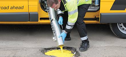AA patrols will be using a revolutionary new solution 'quick seal yellow' to fill potholes quickly without delay to traffic.