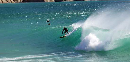 This sandy beach next to a harbour is for expert surfers only. The breaks are extremely powerful and the reef is shallow and rough.