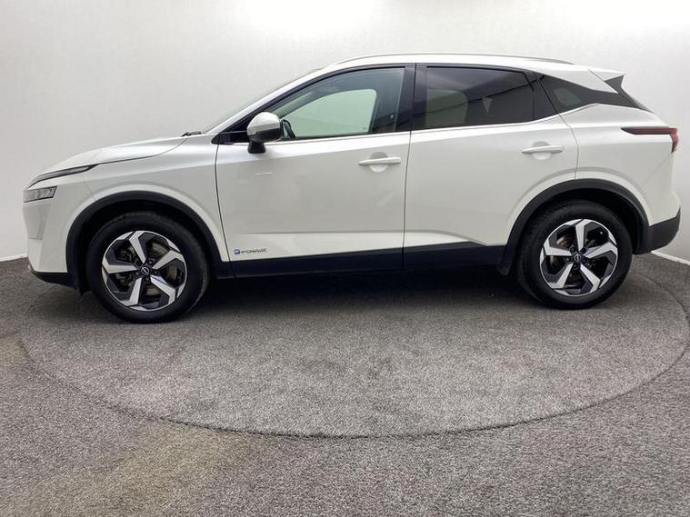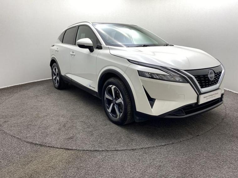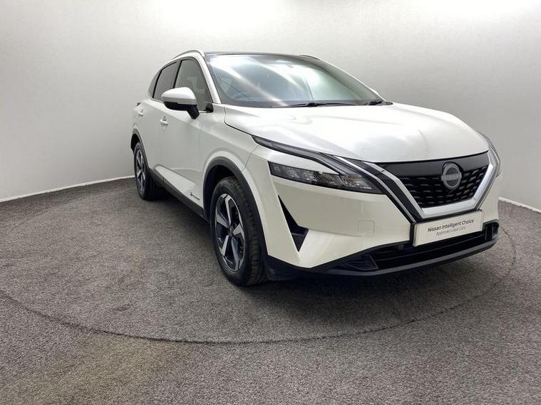 This 2023 Nissan Qashqai h e-POWER Acenta Premium is a Nissan manufacturer approved vehicle, boasting a full service history and a 12 month warranty for your peace of mind. It features a 1.5L Petrol Hybrid Engine, meeting Euro 6 emission standards. This Acenta Premium trim level comes equipped with Intelligent Auto Headlights, Intelligent Blind Spot Intervention, and Intelligent Key with keyless entry. For convenience, it includes a rear view camera for parking assistance and automatic dual zone climate control with a pollen filter.