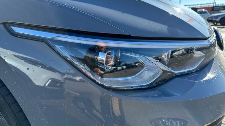 Striking hatchback profile with aerodynamic styling and chrome accents