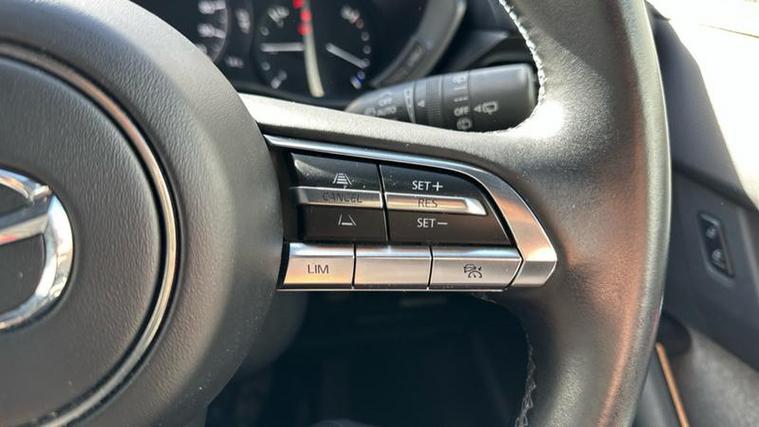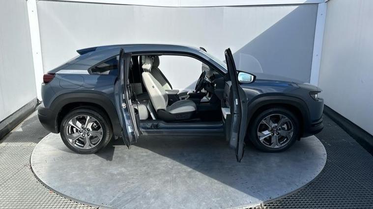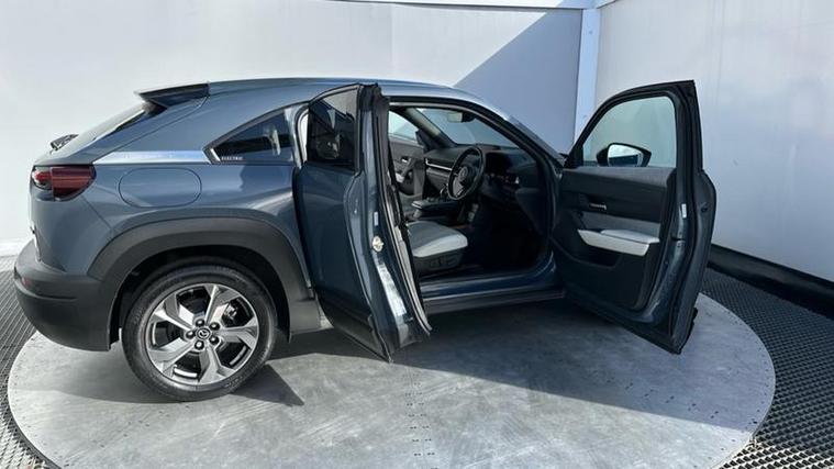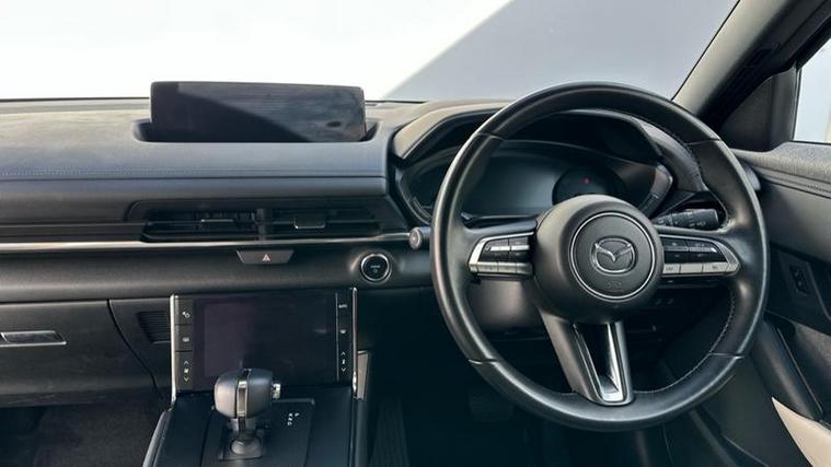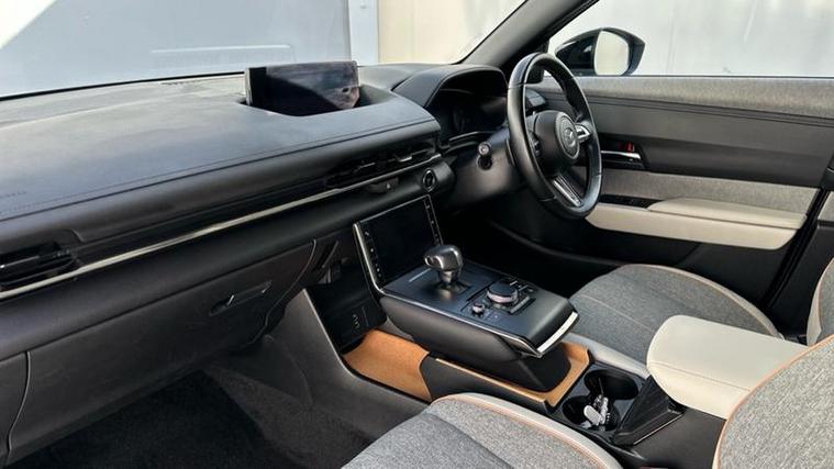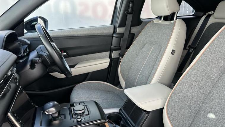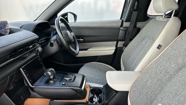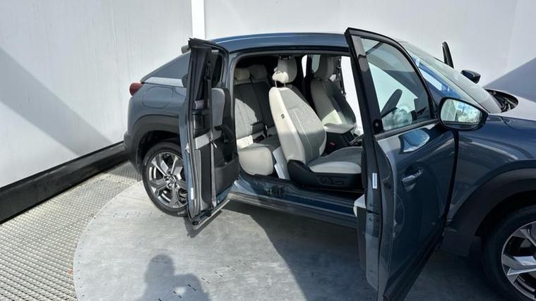 The Sport Lux trim level is well equipped with desirable features that enhance comfort and safety. You'll find automatic climate control for a pleasant cabin temperature, front heated seats for those colder journeys, and LED headlights for improved visibility. Advanced driver aids include Mazda Radar Cruise Control with Intelligent Speed Assist, which helps maintain a set speed and distance from the vehicle ahead, and Blind Spot Monitoring with Rear Cross Traffic Alert, providing an extra layer of awareness when changing lanes or reversing. These features collectively contribute to a more relaxed and secure driving experience, setting this MX-30 apart.
