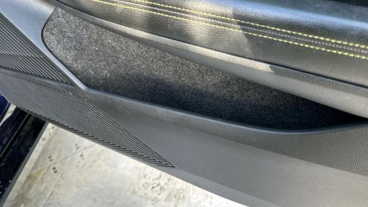 Sleek, modern hatchback design with gold F1-style front blade detail