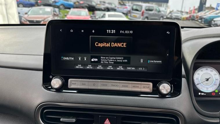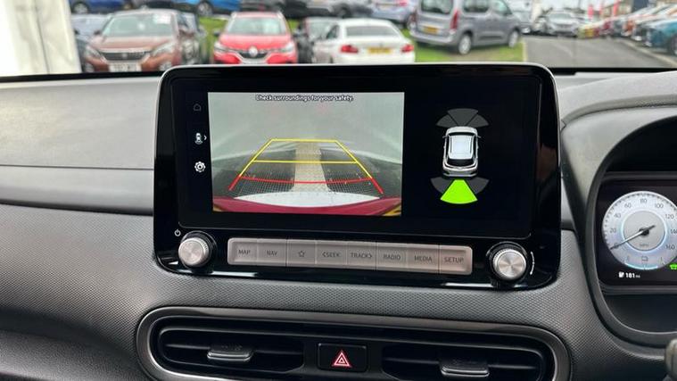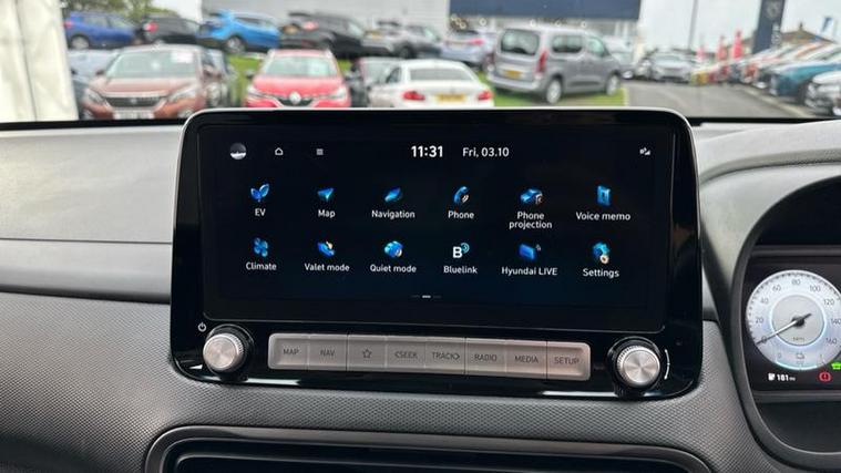 This 2022 Hyundai KONA Premium Electric boasts a clear vehicle history and has had only one owner, with its MOT valid until July 2026. This well maintained electric vehicle offers a substantial battery total capacity of 68 kWh, providing a maximum range of 300 miles when new. For your convenience, it features keyless entry with an engine start stop button, front and rear parking sensors for easier manoeuvring, and seamless phone connectivity with both Apple CarPlay and Android Auto. Safety is enhanced with Blind Spot Collision Avoidance Assist, ensuring a more confident driving experience.