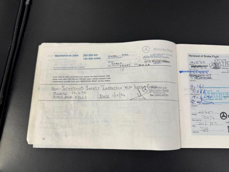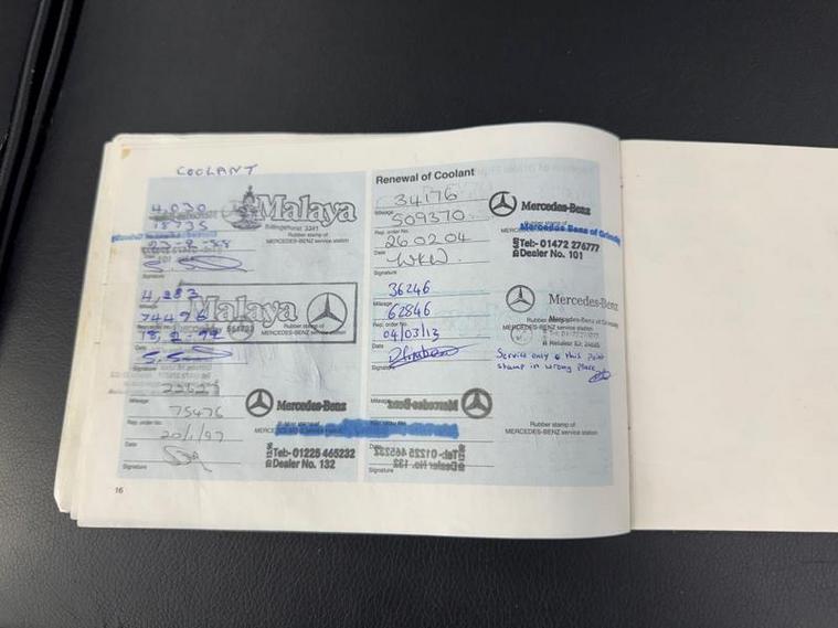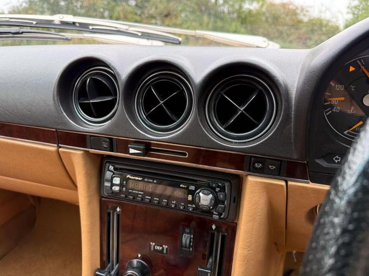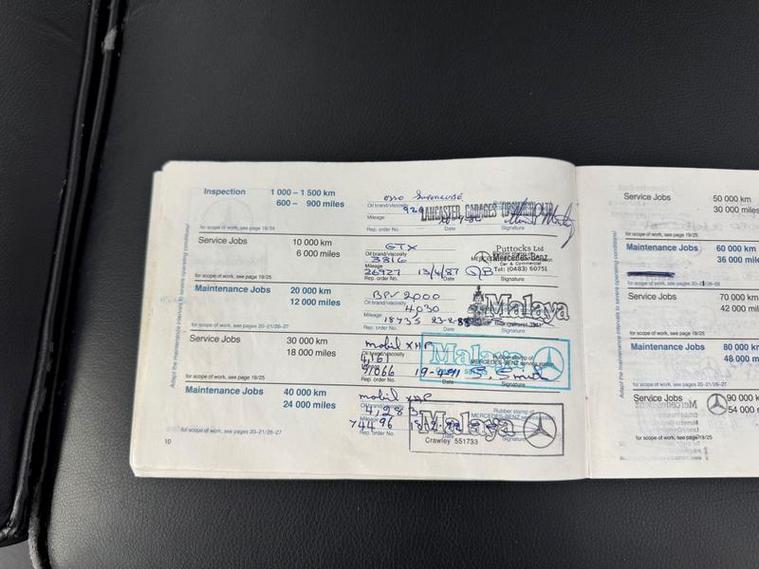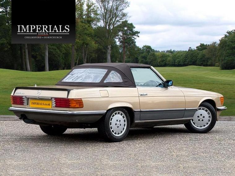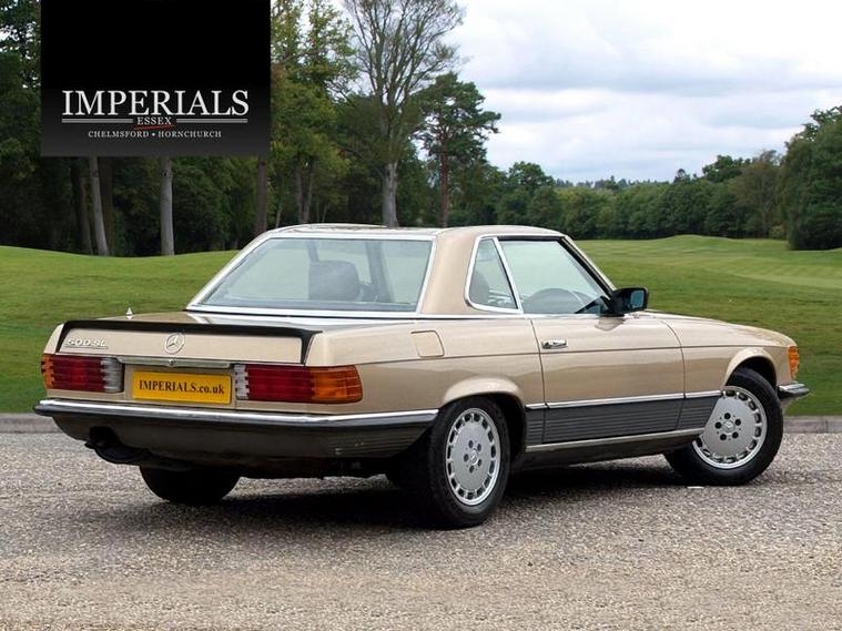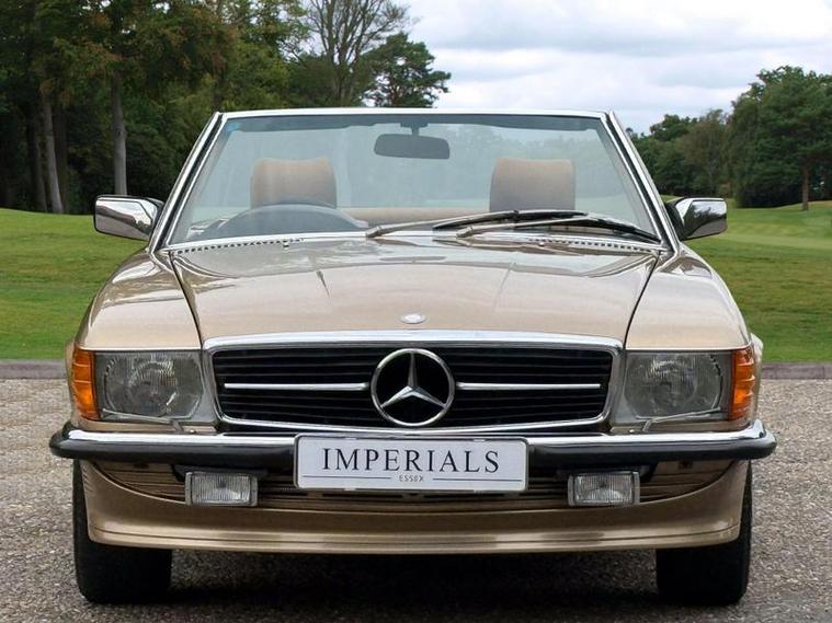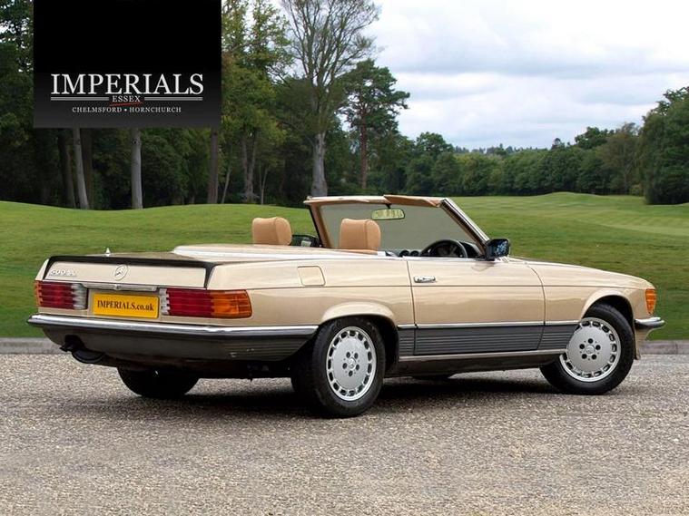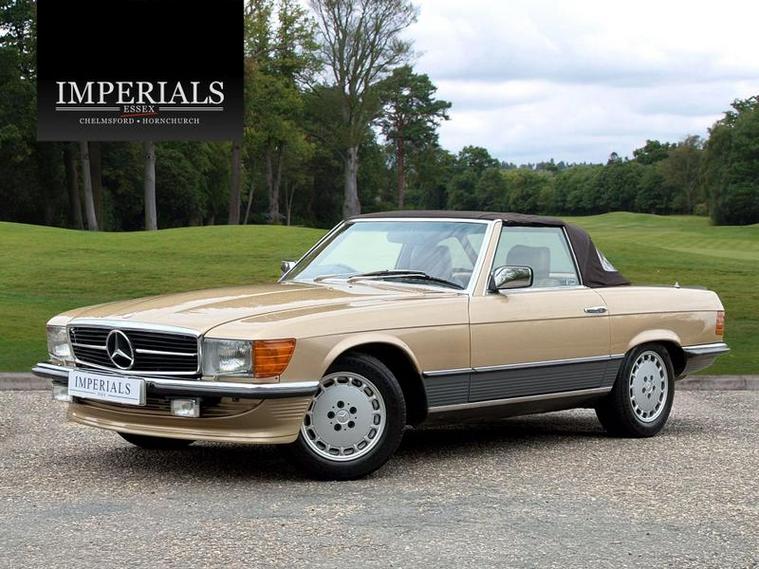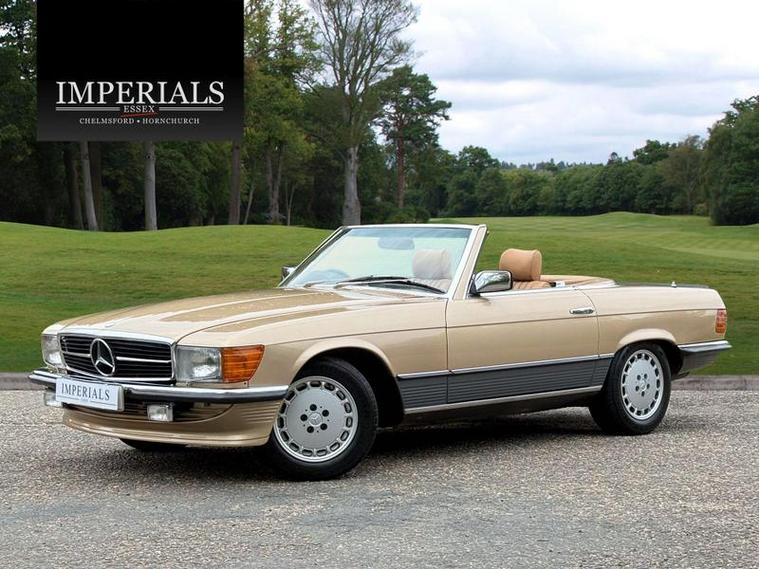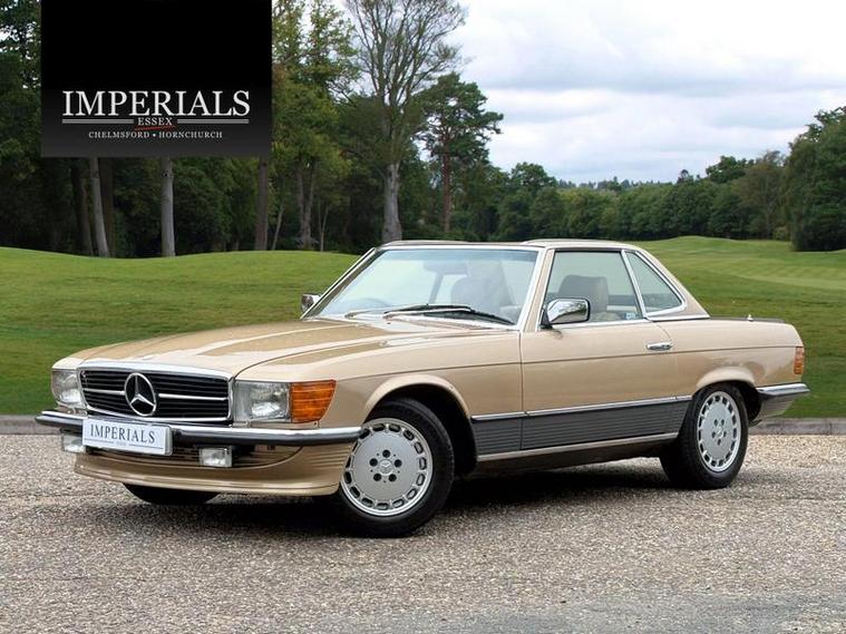 Champagne gold with Full brown leather seats. The condition of this car is remarkable, the leather seats are original with no wear on the bolsters and the black dashboard has suffered no discolouration or cracking. Likewise, the wooden centre console is fully intact with no splitting to lacquer peel, both points are a gentle nod to this car being garaged for the last 24 year period of its life, protected from the elements. This example benefits from an incredible service record where its had a total of 21 Mercedes Benz main agent services. This averages out to a service roughly once every 2 years which you can see in the 'service history collation sheet'. Our car comes complete with its original leather book pack, owners manual, service book and spare key. Along with 33 MOT test certificates , various maintenance invoices and paperwork, all of which are pictured. This car has had 7 owners in total, where the last keeper has owned it for the last 24 years and we were told that the car has been garaged in this ownership. The 'flat face' 15 alloys are finished in a bright silver and are wrapped in the correct Goodyear Eagle 2 tyres. Its comes complete with its colour coded hardtop fully equated with all the correct chrome which is neither pitted, nor dented. Underneath sits a black fabric soft top which is in excellent condition. The plastic rear window is not cracked or hazy. Optional B5OSL Plate Available. dealer's website This Data Does Not Form any Part of a Buying Contract. Our sales executive Jamie Walker can be reached Directly via Telephone as-well as WhatsApp Messaging by using the telephone no: 01708392356 to discuss part exchange valuations, purchase options & handover. Please call us to Confirm which of our Essex Showrooms your desired vehicle is located at before travelling to see us, Everyone of Our Cars Goes Through Our In House Work Shop Prior to Sale by Our Fully Qualified and Experienced Technicians - Buy with Confidence,