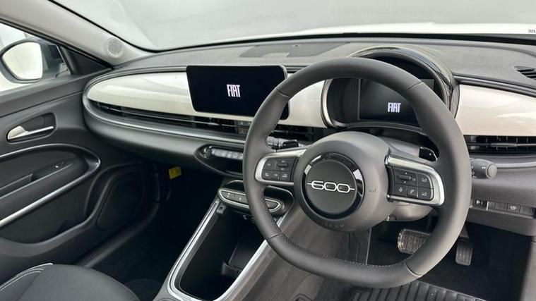 Discover the brand new 2025 Fiat 600, a stylish and efficient choice for your next vehicle. This model is equipped with a 1.2 litre petrol hybrid engine, offering a blend of performance and economy, and meets the Euro 6 emission standards. Inside, you'll appreciate the convenience of wireless Apple CarPlay and Android Auto, keeping you connected on the go. For added comfort, the front seats are heated, perfect for those colder mornings.