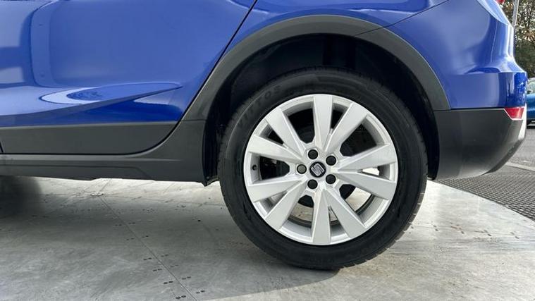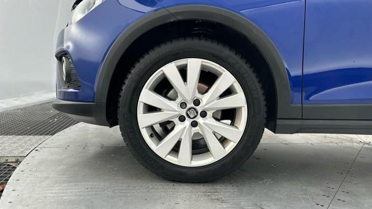 The exterior design is sharp and modern, featuring stylish alloy wheels, roof rails, and LED daytime running lights that give the Arona its distinctive SUV character. Despite its compact size, it provides an elevated driving position, a spacious interior for five passengers, and a generous boot, making it a practical choice for both city driving and longer journeys.