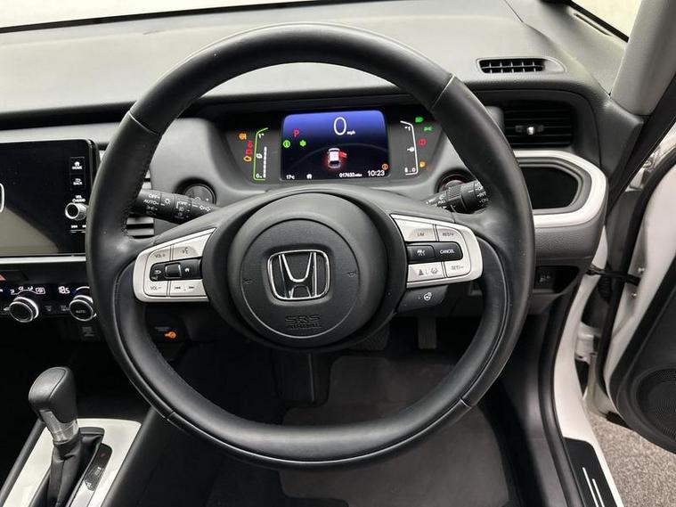 This 2023 Honda Jazz h i-MMD EX offers peace of mind with a 12 month warranty and a fresh 12 month MOT provided on purchase. This Euro 6 compliant model features a 1.5L Petrol Hybrid engine and is presented in the EX trim. Notable features include a heated steering wheel and front seats for added comfort, a rear view camera for easier parking, and smart entry and start for keyless convenience. The Honda CONNECT system with GARMIN Navigation seamlessly integrates with Android Auto and Apple CarPlay, keeping you connected and on the right path.