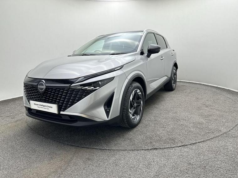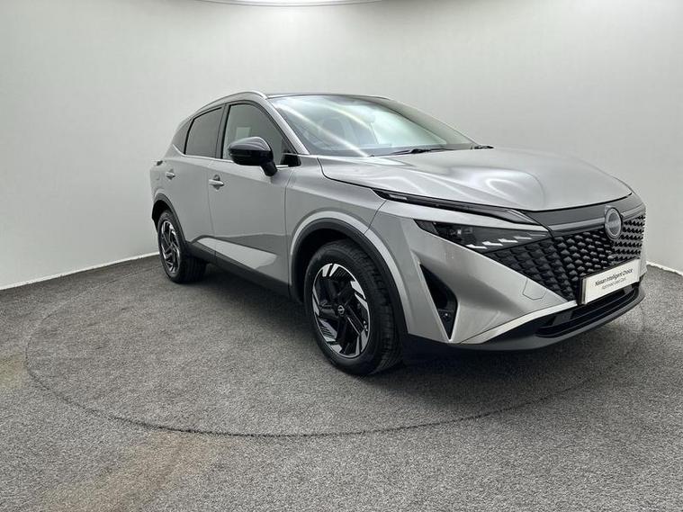 This 2025 Nissan Qashqai DIG T N Connecta presents an exceptional opportunity with an incredibly low mileage of just 5 miles, making it virtually new. As a Nissan manufacturer approved vehicle, it boasts a 1.3 litre petrol mild-hybrid engine compliant with Euro 6 emissions standards. This single owner example comes equipped with the desirable Glass Roof Pack, featuring a fixed panoramic sunroof, and advanced safety features including Blind Spot Intervention and Blind Spot Warning. Connectivity is seamless with wireless Apple CarPlay and Android Auto, while the 3D Intelligent Around View Monitor provides a 360 degree colour camera with moving object detection for effortless parking assistance.
