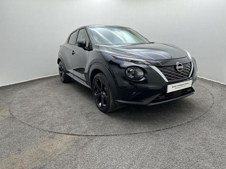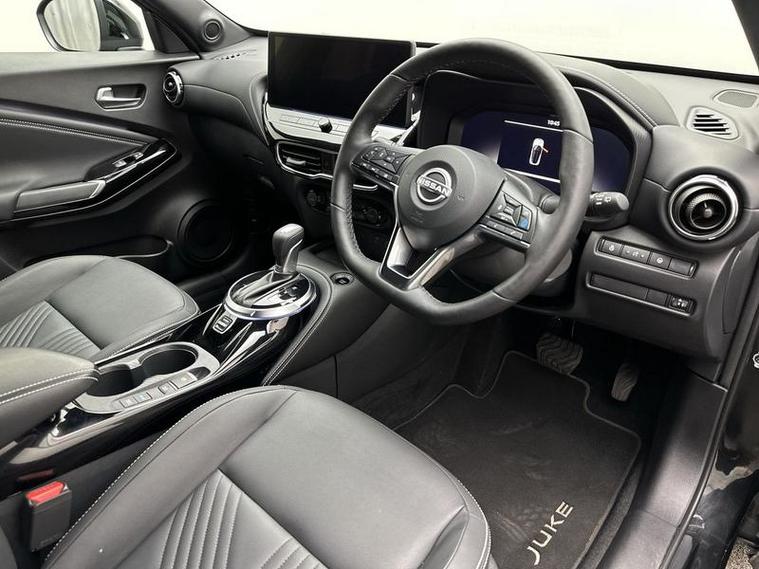 This 2025 Nissan Juke Tekna is a Nissan manufacturer approved vehicle, meaning it has passed a rigorous inspection and comes with the reassurance of manufacturer backing. It features a 1.6L Petrol Hybrid engine, meeting Euro 6 emission standards. For your peace of mind, the MOT is valid until September 2028. Inside, you'll find a host of convenient features including Bluetooth connectivity with USB A+C ports, a Heat Pack with heated seats and steering wheel, and a premium Bose Personal Plus Audio System. Parking is made easier with a rear view camera, and the Intelligent Key system offers keyless entry and walk away lock and approach unlock functions.
