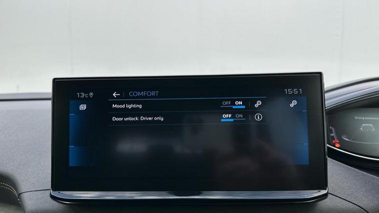 Peugeot i-Cockpit with Large Touchscreen – High-definition central display for navigation, media, and vehicle settings.