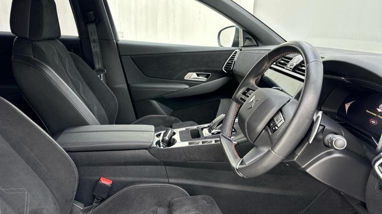 The Performance Line + trim enhances the DS 7’s bold road presence with distinctive styling details, gloss black accents and larger alloy wheels, giving it a sporty yet elegant appearance. Inside, the cabin showcases high-quality materials and a driver-focused layout, featuring a digital cockpit display and large touchscreen infotainment system with navigation and smartphone connectivity including Apple CarPlay and Android Auto.