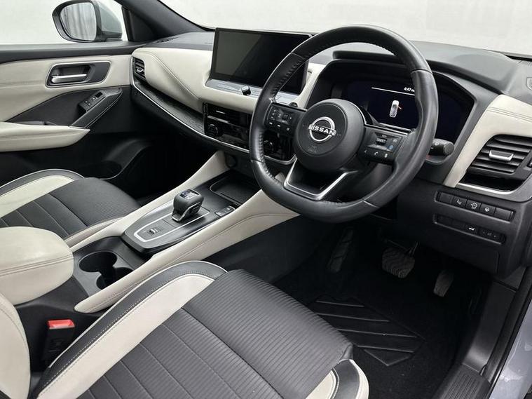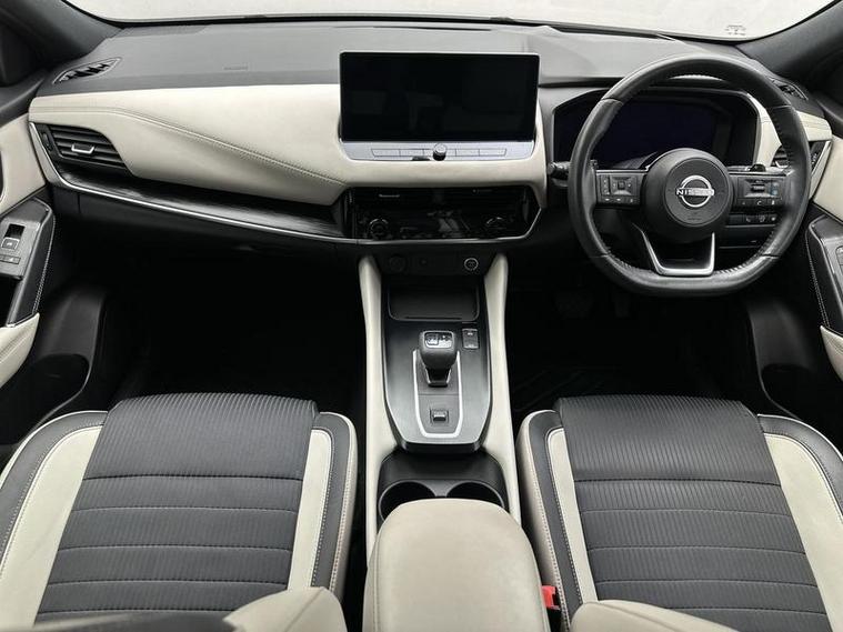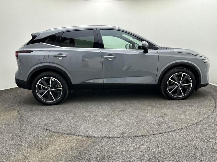 This 2022 Nissan Qashqai DIG-T Tekna boasts an exceptionally low mileage for its age, having last been serviced at just 27, 584 miles on 16th June 2026. This Euro 6 compliant 1.3L Petrol Hybrid is presented with a full 12 months MOT and a 12 month warranty for your peace of mind. The Tekna trim level ensures a premium experience, featuring Leather Upholstery, Navigation, Intelligent Auto Headlights, rear parking sensors, and a rear view camera to aid manoeuvrability.