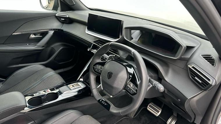 The GT trim offers a high level of equipment including the Peugeot i-Cockpit digital driver display, touchscreen infotainment system with Apple CarPlay and Android Auto, climate control, and parking sensors with a reversing camera. The interior is modern and comfortable with supportive seats, ambient lighting, and quality materials throughout.