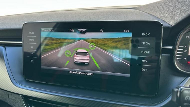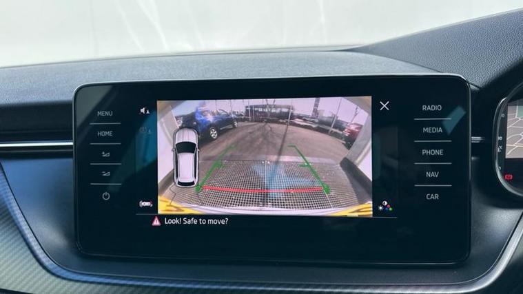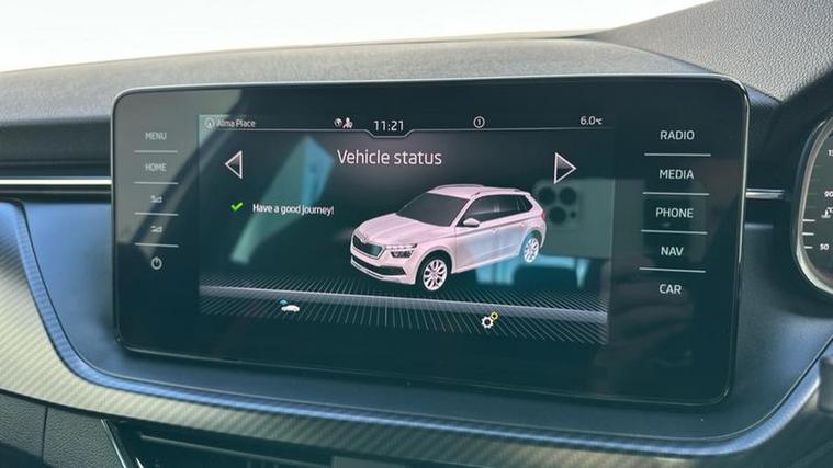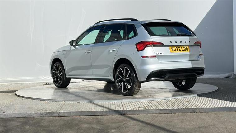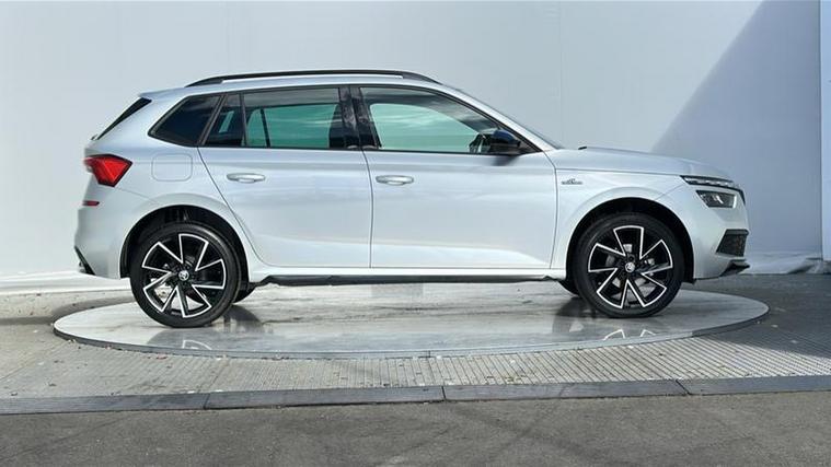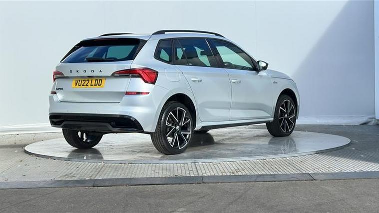 Externally, the Kamiq features distinctive styling with black alloy wheels, black roof rails, LED lighting, and a panoramic roof. With five doors and a practical boot space of around 400 litres, it is suitable for commuting, family use, and longer journeys.