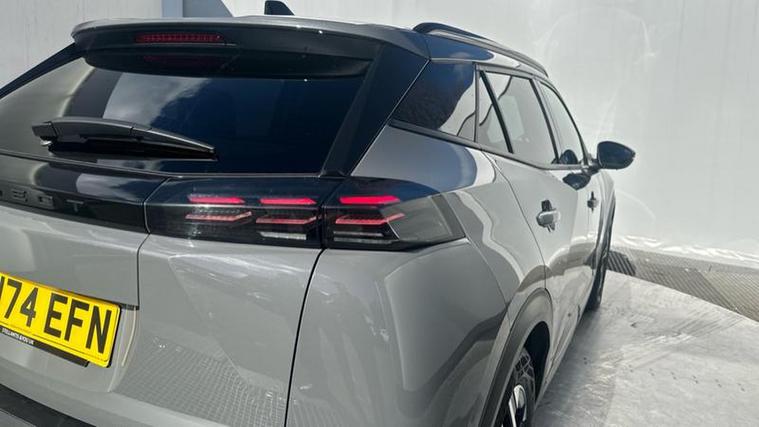 The exterior design is bold and contemporary, featuring Peugeot’s distinctive front grille, sharp lines and signature LED daytime running lights, giving it a confident SUV stance.