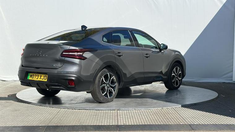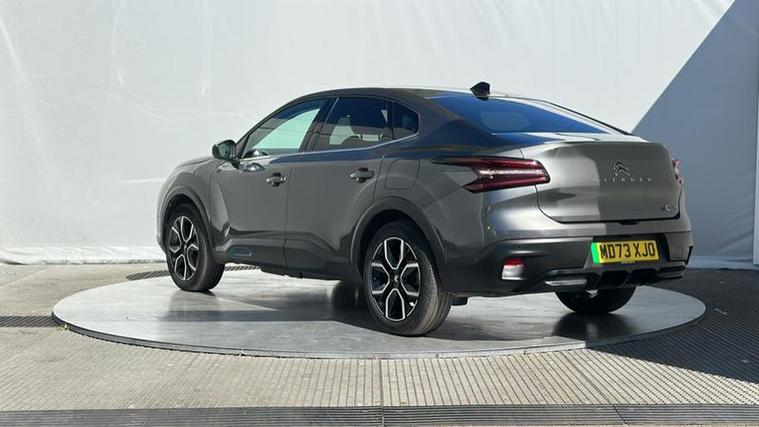 With its sleek fastback styling and refined design, the e-C4 X offers a distinctive and sophisticated road presence, blending the practicality of a saloon with the comfort of an SUV. Its elevated driving position provides excellent visibility and a relaxed driving feel.