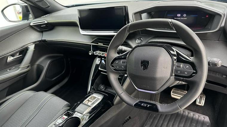 Inside, the cabin showcases Peugeot’s innovative i-Cockpit layout, with a digital driver display and intuitive controls creating a modern, driver-focused environment. The GT trim adds a high level of specification, with quality materials and a refined finish throughout.