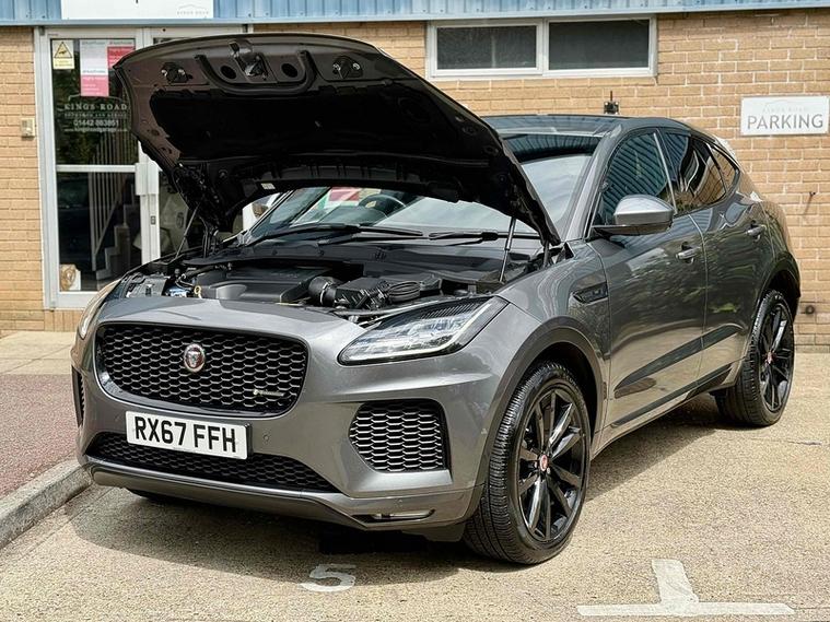 With a full service history, this 2018 Jaguar E-PACE P250 R-Dynamic SE is a sound choice. The R-Dynamic SE trim complements the vehicle's stylish design, whilst the 2.0L petrol engine and four-wheel drive drivetrain ensure a smooth and capable driving experience. The vehicle meets Euro 6 emission standards. Enjoy enhanced comfort and convenience with features such as the fixed panoramic roof, blind spot monitoring, black pack, heated steering wheel, and 14-way electric memory front seats. The black exterior pack adds a touch of sophistication, and the 20in alloy wheels in gloss black finish enhance the vehicle's overall aesthetic. For peace of mind, this vehicle comes with a 6-month warranty and will have 12 months MOT provided on purchase.The large boot space is a real plus, making this vehicle more practical than others in its class. The impressive acceleration, achieving 0-60mph in just 6.7 seconds, demonstrates that this vehicle offers a thrilling driving experience that surpasses many competitors. All of our cars are fully and professionally inspected, detailed and serviced in our purpose built and fully equipped Jaguar / Land Rover Accredited workshop and offered with a new 12-month independent MOT prior to collection- excluding vehicles marked P/X to clear, as-well as ensuring a clear HPI record. We provide a 6-month full warranty which can be extended upon request to 12, 24 or 36 months as well as 12-months free AA Roadside Assistance. We can provide competitive finance packages to suit all requirements and cater a deal specifically to you. We also offer discounted servicing for any car bought from us returning for future works. Part Exchanges are very welcome just call us for a valuation and nationwide delivery is also available. We are 30+ year old established family run business. For after hours attention please call 01442791537. Whatsapp available for videos/ further pictures or to arrange a viewing- Kieran 01442791537. Tracker fitting and storage available on request!