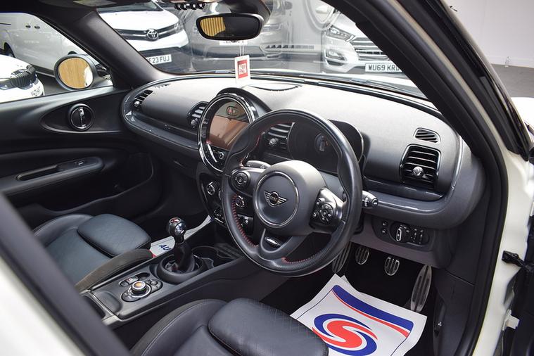 We are delighted to offer for sale this absolutely stunning and HUGE SPEC Mini Clubman Cooper Sport 1.6 Petrol 6 Speed Manual with JCW Styling. This outstanding example comes finished in Pepper White with a Contrasting Black Premium Leather Trim and sits on some stunning 19" Diamond Turned JCW Alloy Wheels. Our Clubman Boasts a Full Mini Service Record and will come supplied with a Fresh 12 Months MOT, 12 Months AA Breakdown Cover, 6 Months Warranty and 2 Keys. Additionally, all of our vehicles undergo a Pre Delivery Inspection and Road Test before sale. We pride ourselves in the quality of our vehicles and the service in which we provide to our customers.Full black leather trim, Tilt & slide glass panoramic roof with sun blind, Selectable driving mode, traction control, Colour touch screen multi media system, satellite navigation, Bluetooth, DAB, USB, Mini connected, 12v charger, Ambeint lighting, Leather bound multi function steering wheel, Cruise control, Speed limiter, Voice command, Virtual cockpit, Auto wipers, Auto lights, Remote central locking, Keyless go, Electric adjustable mirrors, Electric windows, Rear parking sensors, 19" Diamond cut alloy wheels, Black grill, roof, mirror backs, Privacy glass, Isofix seats,