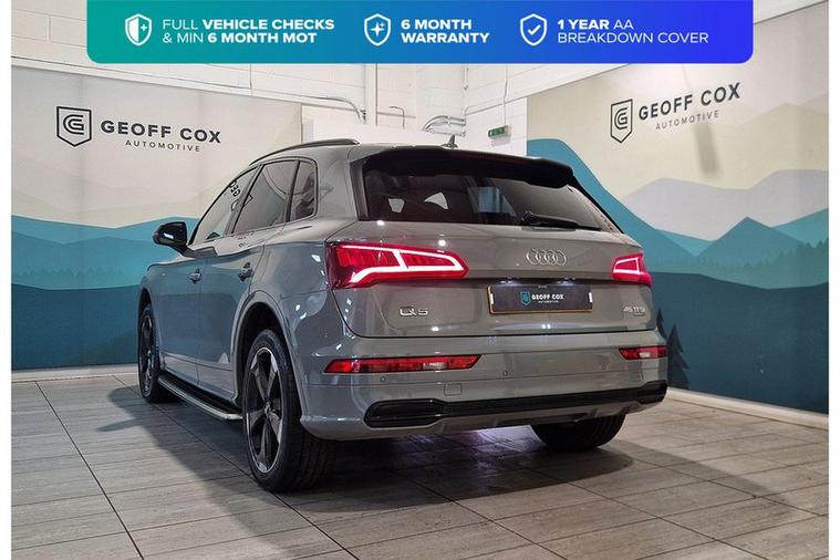 Say hello to our stunning 2019 Audi Q5 Black Edition – where luxury SUV practicality meets sporty, head-turning style. With its bold Black Edition styling pack, refined interior and punchy performance, this Q5 is perfect for drivers who want comfort, capability and a touch of attitude all in one sleek package.Key Features:Black Edition styling with gloss black exterior accents, unique alloy wheels and privacy glass for a more aggressive, sporty look.Luxurious interior finished in premium materials, with plenty of space for passengers and luggage.Audi Virtual Cockpit digital display with crisp graphics and configurable views.MMI Navigation Plus with intuitive controls, voice command and seamless connectivity.Apple CarPlay & Android Auto for effortless smartphone integration.Heated front sport seats with electric adjustment for maximum comfort.Premium sound system for crystal-clear audio on every journey.The Audi Q5 Black Edition is more than just an SUV – it’s a stylish all-rounder that combines Audi’s trademark quality with everyday usability. Whether you’re navigating the city, heading out on a long road trip or just want to enjoy the drive, this Q5 has the style, comfort and capability to keep up with it all.Peace of Mind with Our Used Car Guarantee:✅ 6 Months Warranty included, with the option to extend up to 3 years for added reassurance.✅ Minimum 6 month MOT, so you can drive away worry-free.✅ Full Vehicle Health Check (VHC) conducted by our expert technicians.✅ 12 Months AA Breakdown Cover, providing roadside assistance wherever you go.✅ Full HPI checks for complete peace of mind.Why Choose Geoff Cox Automotive• Custom video walkarounds and virtual vehicle demonstrations available on any car.• Full vehicle demonstrations and inspections at our Derbyshire showroom.• Reserve your car online via our website for £99.• Book a test drive on any of our cars.• AA approved dealer, meeting or exceeding AA approved standards on all used cars.
