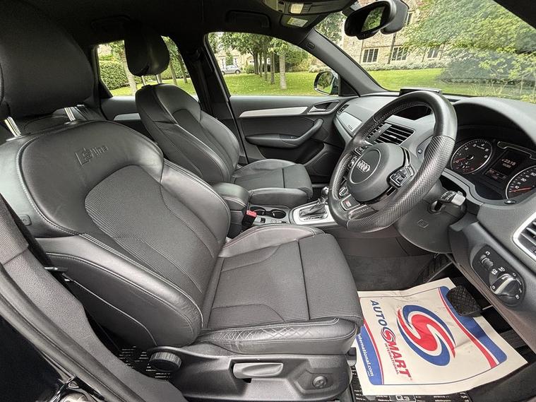 AUDI Q3 QUATTRO S LINE PRESENTED IN PHANTHOM BLACK IN WONDERFUL CONDITION, RECENTLY SERVICED, GREAT SPECIFICATION INCLUDING 19" ALLOY WHEELS, HALF LEATHER SEATS, BLUETOOTH, SAT NAV, FRONT AND REAR PARKING SENSORS, REVERSING CAMERA, PDDLE SHIFT, POWER FOLDING MIRRORS, DUAL CLIMATE AUTO AIR CONDTIONING, AUTO HEADLIGHTS, KEYLESS ENTRY AND START, START STOP TECHNOLOGY, S LINE TRIM, MULTI FUNCTION STEERING WHEEL, HILL START ASSIST, PLUS MUCH MORE CAZ AND ULEZ COMPLIANT, FRESH IMPORT FROM JAPAN, ALL RELEVANT CONVERSIONS INCLUDING SPEEDO AND RADIO CARRIED OUT TO UK SPECIFICATION, FULLY TRANSLATED PAPERWORK, MILEAGE VERIFICATION CERTIFICATE, All Vehicles Come With A 60 Point Pre-Delivery Inspection, New MOT (Where Applicable), 12 MONTHS AA COVER And 3 Months Warranty. ALL CARS HPI CHECKED, FINANCE AVAILABLE SUBJECT TO STATUS, Please Ring 01173682594 OR E-MAIL.WE HAVE OVER A 100 SIMILAR CARS AND MANY MORE ARRIVING SOON PLEASE VISIT dealer's website FOR A FULL STOCKLIST OR GIVE US A CALL TO FIND OUT WHATS AVAILABLE.PLEASE CALL BEFORE ARRIVING AS NOT ALL CARS ARE KEPT ON SITE.