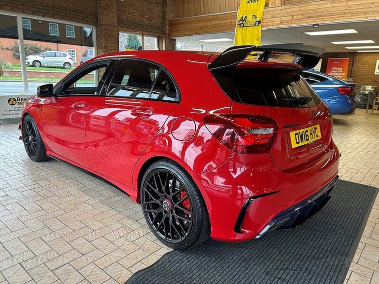 For sale is this stunning used Mercedes-Benz A Class A45 AMG in a striking red colour. With 7 previous owners, this petrol hatchback has a mileage of 81750 and is a 2016 model. The automatic transmission, 5 doors, and 2.0 engine size make this car a powerful and stylish choice.This A45 AMG boasts a top speed of 155 and an impressive acceleration of 4.6. With 355 BHP and a fuel efficiency of 40.9 MPG, this car offers both speed and economy. The standard specification includes features such as 18in alloy wheels, AMG bodystyling, cruise control, and automatic headlights.MOT & Service History.MOT runs until 06/02/202631/01/2023 Prestige Servicing 67, 792 miles07/02/2024 Prestige Servicing 76, 806 miles04/02/2025 Prestige Servicing 79, 885 milesIt will be serviced and given a 12 month MOT by us before collection.WarrantyThe car will come with 3 month Platinum Warranty from Warrantywise, which cvan be extended up to 12 months.Don't miss out on the opportunity to own this exceptional car. Contact us today to arrange a viewing and test drive.