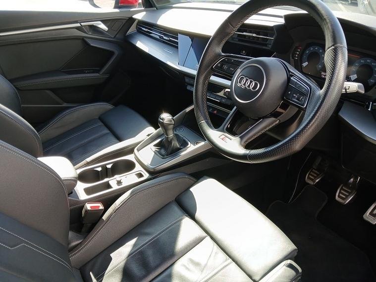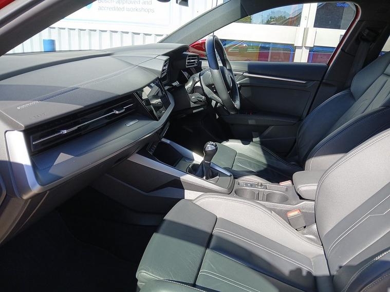 2022 Audi A3 TFSI S Line. 1.0L petrol engine, 6 speed manual gearbox. Red paint. Euro 6, ULEZ compliant. 1 owner from new, full Audi service history.Features include: Apple car play, Android auto, black leather seats, front and rear parking sensors, cruise control, electric windows, electric folding mirrors, auto lights and wipers, satnav, dual zones climate controlled air conditioning, blue-tooth, dab radio, usb inputs, drive select modes, folding rear seats, isofix, 18 inch alloy wheels and much more!Finance options available.This vehicle comes with 3 months / 3000 miles warranty and 12 months free breakdown cover with the AA. We are an approved AA dealership.For more information or to arrange an appointment to view this vehicle please call or email us.