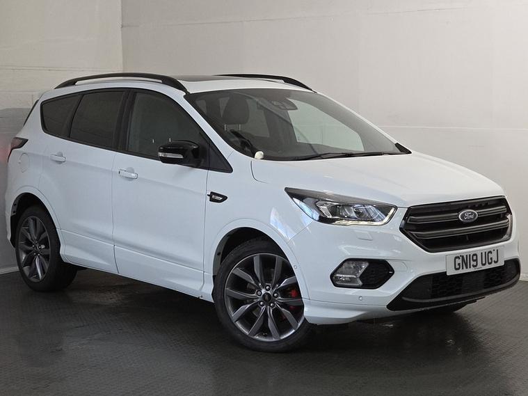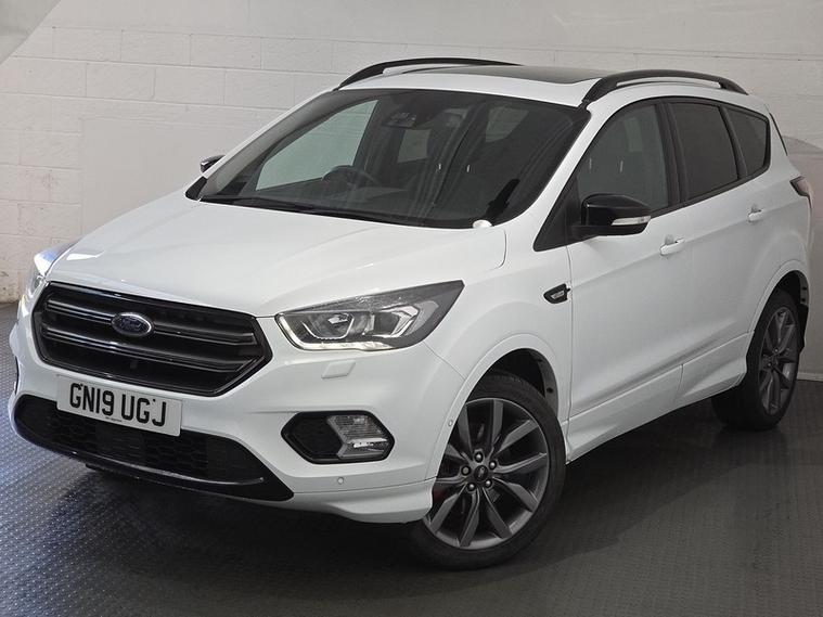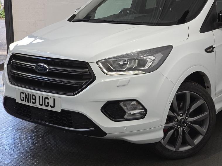 This 2019 Ford Kuga TDCi ST-Line Edition boasts a single owner from new and a clear vehicle history check, offering peace of mind for its next owner. This stylish SUV features a robust 2.0L diesel engine paired with a capable four wheel drive system, ensuring confident performance in various conditions. As a Euro 6 compliant vehicle, it meets modern emissions standards, and its MOT is valid until February 2026, providing extended roadworthiness.The ST-Line Edition trim level signifies a sportier aesthetic and enhanced features, setting this Kuga apart from other models. Its combination of a powerful yet efficient diesel engine, all wheel drive capability, and the desirable ST-Line styling makes it a compelling choice for those seeking a versatile and well maintained family vehicle. This Kuga represents a well cared for example with excellent provenance.Not only do all our vehicles come fully inspected with a minimum of 6 months MOT and Service, we also offer flexible finance options with competitive rates and affordable monthly payments to suit your budget. As an FCA-regulated dealer, we ensure a secure, transparent, and hassle-free process, giving you confidence in your purchase. Get in touch to explore your options toda