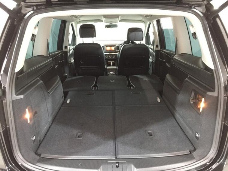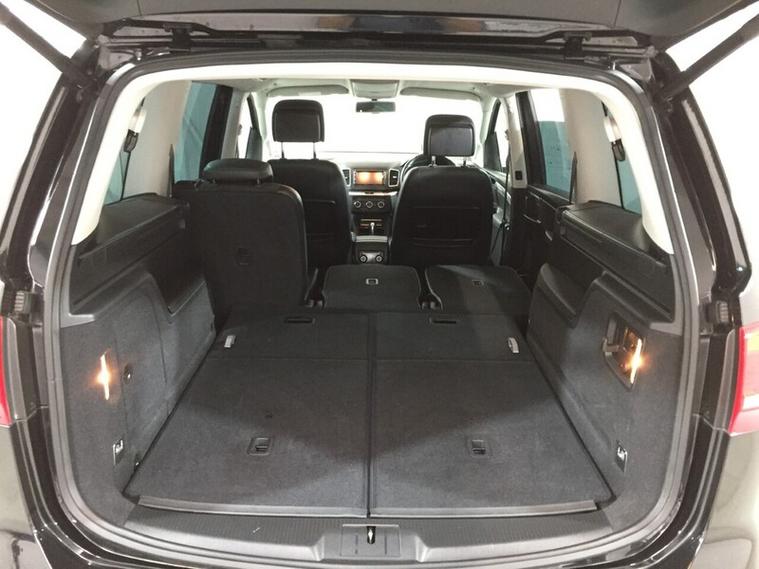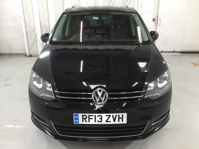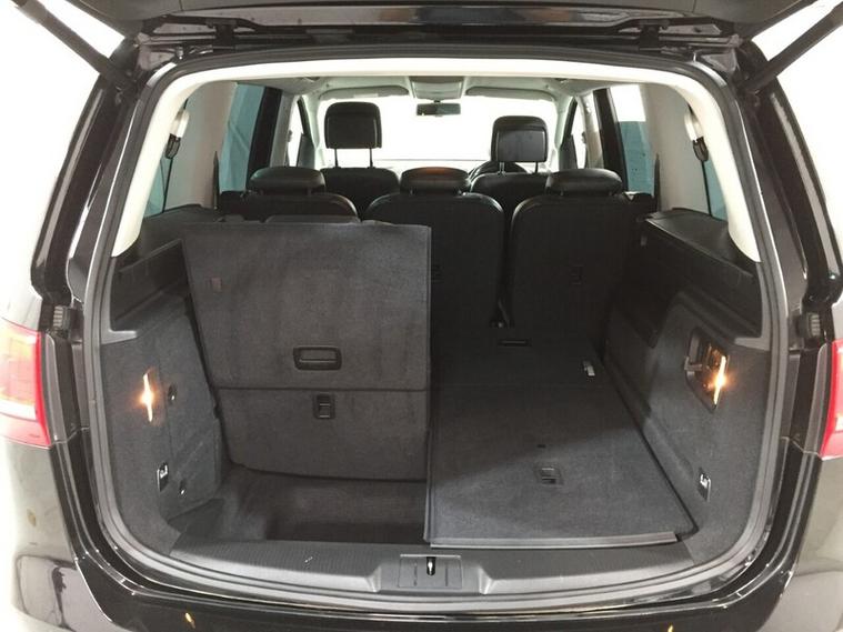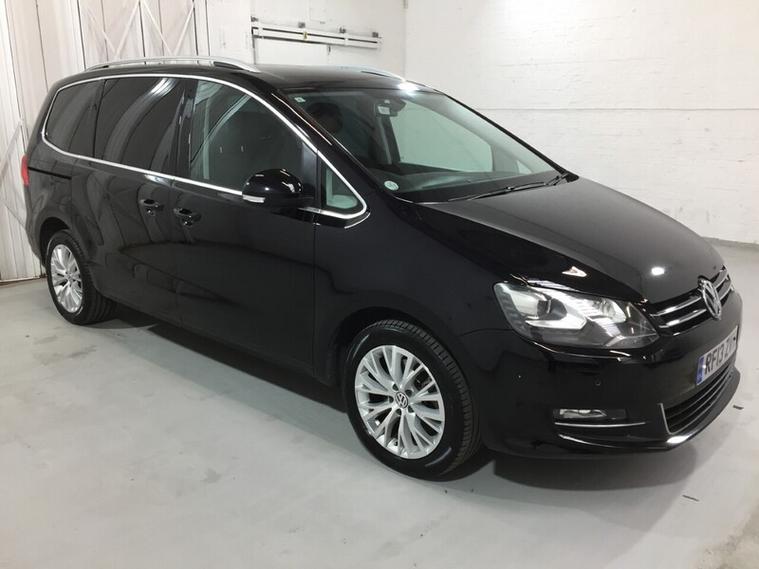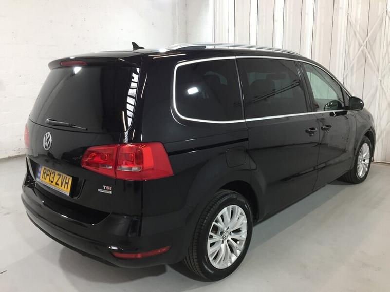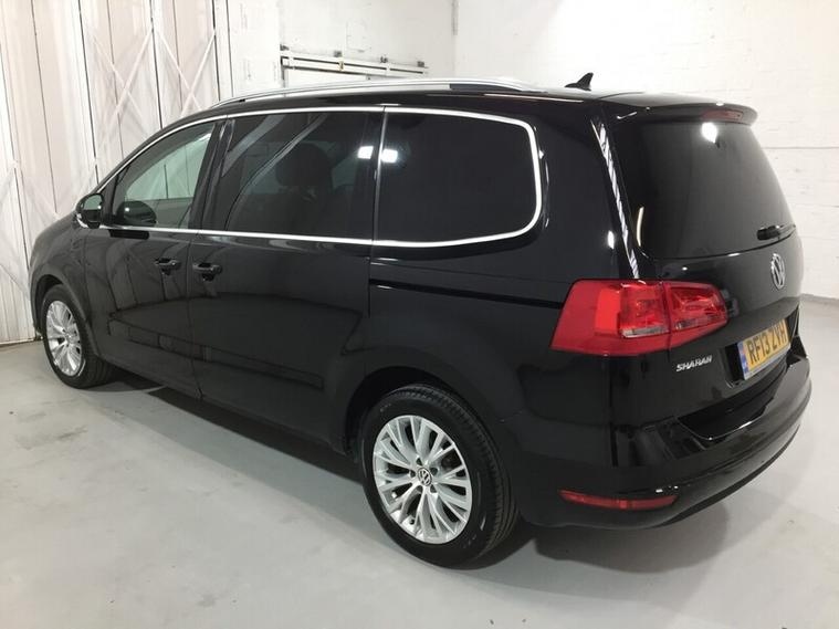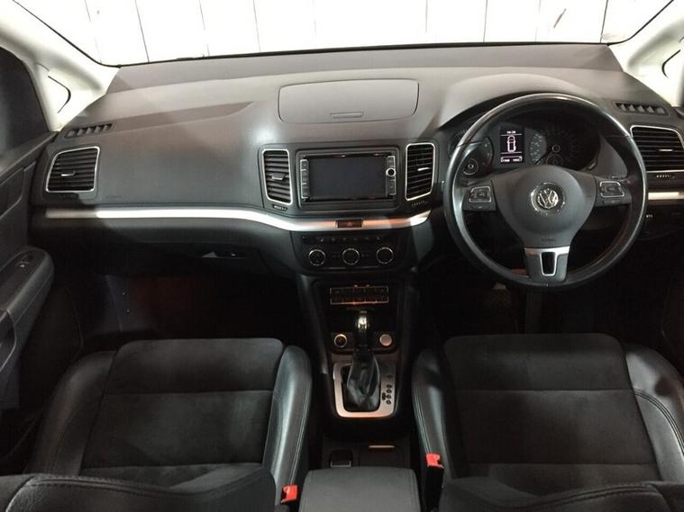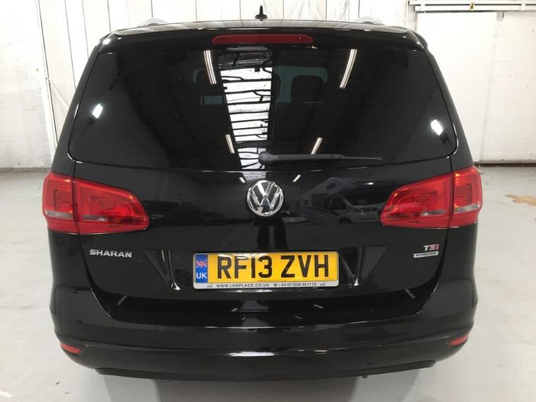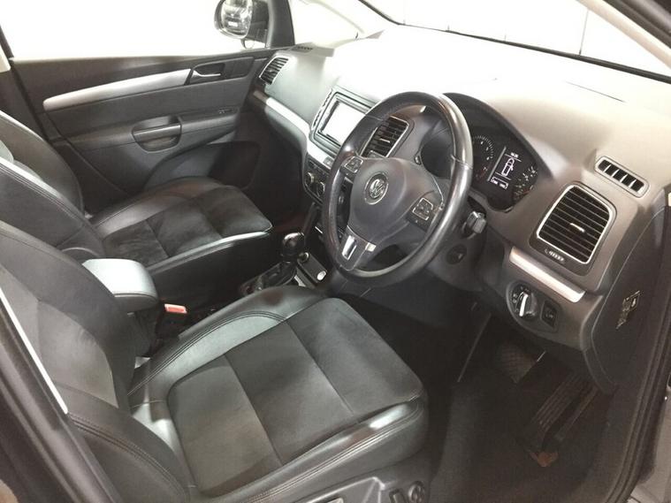 This Right Hand Drive Volkswagen Sharan has the desirable combination of ULEZ compliant 150 horsepower 1.4 TSI petrol engine and fully automatic 6 speed DSG transmission and 7 seats. It has a great specification including part leather and alcantara seats, electric heated front seats, 3-zone climate control for front and rear, cruise control, multi-function leather steering wheel, factory touch screen multimedia interface with CD and DVD player, Bluetooth Handsfree telephone and audio streaming and 76-90 MHz FM Radio, rear camera, front and rear park distance control, power opening and closing sliding doors and tailgate, keyless entry and keyless push button start with two full function keys, ISOFIX childseat points, rear privacy glass and 17 inch alloy wheels. The third row of seats fold flat into the floor if not required to provide a large luggage space. Registration number: RF13 ZVH.First used March 2013, distance driven 57, 308 miles.