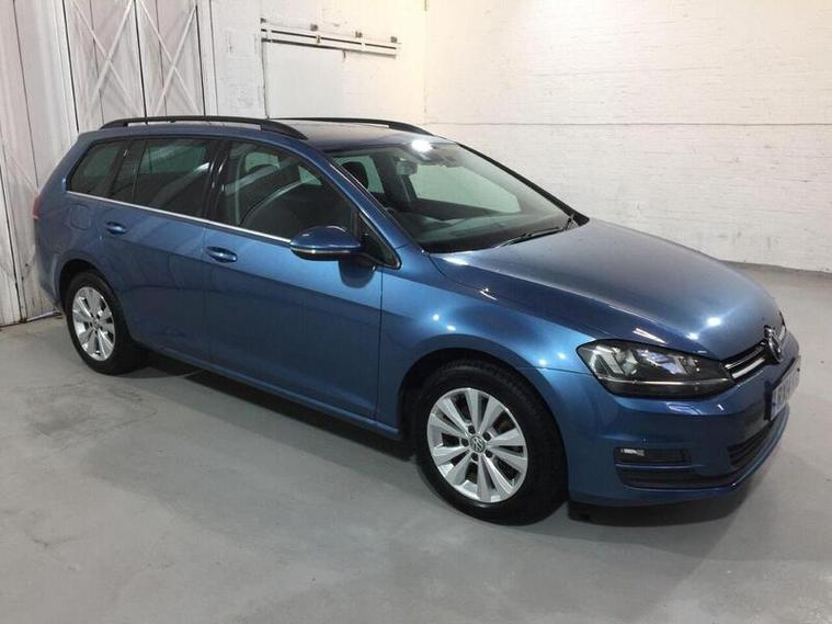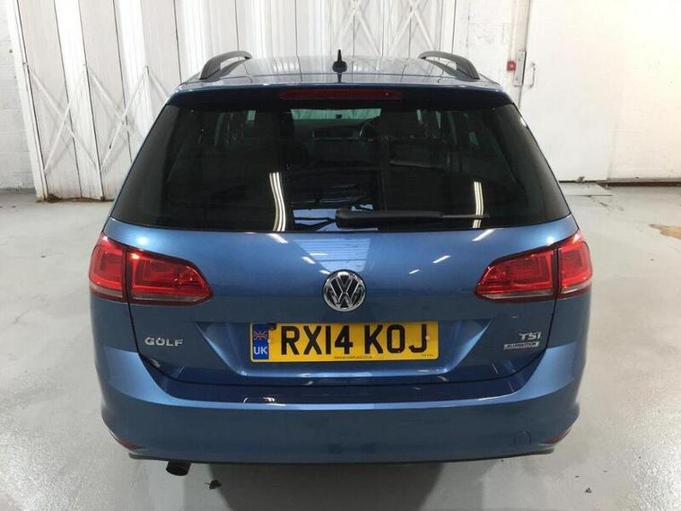 This Volkswagen Golf VII Estate has a 105 horsepower petrol engine and 7 speed automatic DSG transmission for combined economy in excess of 56 MPG. It has driven a very low distance of 27, 020 miles from new. It benefits from ice cold air conditioning, large touch screen multimedia interface with FM radio, CD player, Bluetooth handsfee telephone and audio playback, multi-function leather steering wheel with paddle shifters and adaptive cruise control and speed limiter (ACC), colour reversing camera, automatic headlamps, remote central door locking and immobiliser with two full function keys, electric power-fold door mirrors and 16 inch alloy wheels. Fitted with rear sun protection glass, the rear seats have ISOFIX childseat points and split fold as required. The boot has a retractable luggage cover and an emergency spare wheel and tyre is also fitted. The car also benefits from BIMTA mileage guarantee and is ready to drive away today. Registration: RX14 KOJ.First used April 2014, distance driven 27, 020 miles.