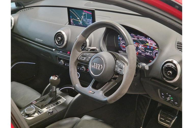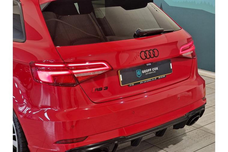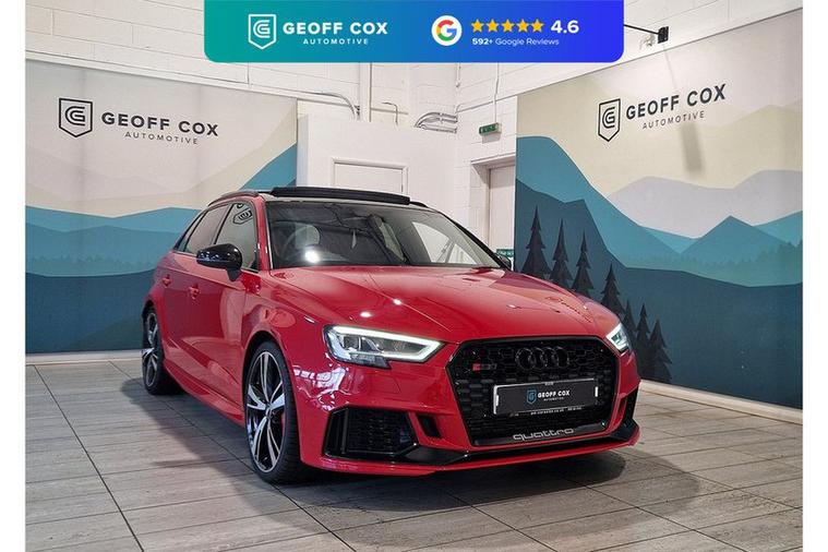 Pure power, precision, and unmistakable presence. Our stunning 2019 "Tango Red" Audi RS3 Audi Sport Edition is where everyday practicality meets race-bred performance. With its iconic 2.5-litre five-cylinder engine, aggressive stance, and refined cabin, this compact powerhouse delivers an exhilarating drive every single time you hit the start button.Key Features:2.5-litre TFSI turbocharged five-cylinder engine producing a thrilling 400PS, paired with a lightning-quick 7-speed S tronic gearbox.Quattro all-wheel drive system for exceptional grip and control, no matter the weather.Audi Sport Edition styling, including gloss black exterior detailing, black 19-inch alloy wheels, and striking LED headlights for maximum road presence.Panoramic sunroof adding light and space to the cabin.Sport-tuned suspension delivering sharp handling and precise steering feedback.Luxurious interior finished in fine Nappa leather with RS embossing and carbon fibre inlays.Flat-bottomed RS steering wheel with paddle shifters for that true motorsport feel.Audi Virtual Cockpit with RS-specific displays — keeping performance stats front and centre.Bang & Olufsen sound system, providing concert-level audio dealer's website practicality with five doors and a versatile boot — fast and functional!Peace of Mind with Our Used Car Guarantee:✅ 6 Months Warranty included, with the option to extend up to 3 years for added reassurance.✅ Minimum 6 month MOT, so you can drive away worry-free.✅ Full Vehicle Health Check (VHC) conducted by our expert technicians.✅ 12 Months AA Breakdown Cover, providing roadside assistance wherever you go.✅ Full HPI checks for complete peace of mind.Why Choose Geoff Cox Automotive• Custom video walkarounds and virtual vehicle demonstrations available on any car.• Full vehicle demonstrations and inspections at our Derbyshire showroom.• Reserve your car online via our website for £99.• Book a test drive on any of our cars.• AA approved dealer, meeting or exceeding AA approved standards on all used cars.