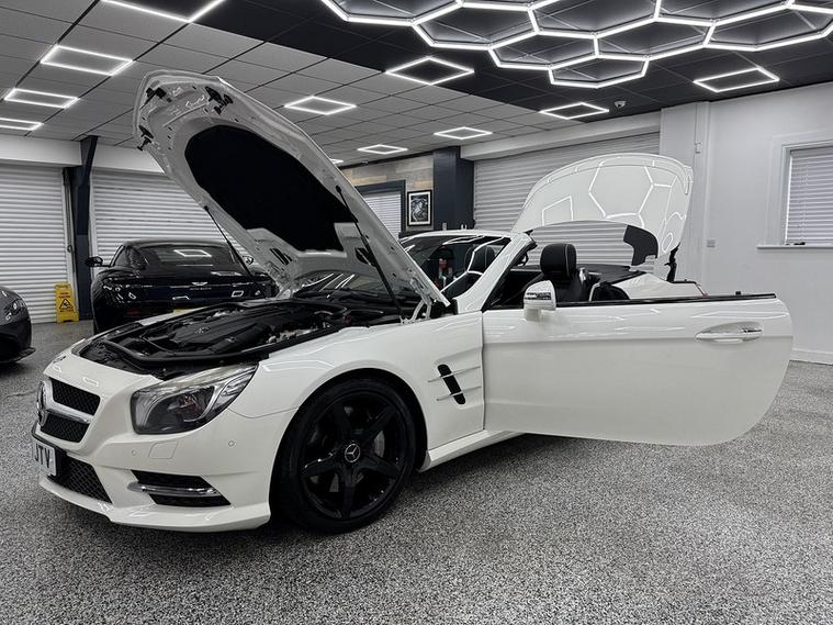 Crystal motor company are delighted to offer for sale this beautifully presented 2015 Mercedes-Benz SL 3.0 SL400 AMG Sport Convertible 2dr Petrol G-Tronic+ Euro 6 (s/s) (333 ps) finished in DIAMOND WHITE. This car comes with TWO KEYS, FOUR FORMER KEEPERS, FULL MERCEDES SERVICE HISTORY. This car is equipped with 19" ALLOY WHEELS, FRONT AND REAR PARKING SENSORS, REAR REVERSING CAMERA, ELECTRIC FOLDING WING MIRRORS, INTELLIGENT HEADLIGHTS, FIXED PANORAMIC ROOF, BLACK LEATHER SEATS, ELECTRIC MEMORY FRONT SEATS, HEATED FRONT SEATS, PADDLE SHIFT, CRUISE CONTROL, ELECTRIC ADJUSTABLE STEERING WHEEL, ELECTRIC WIND DEFLECTOR, DAB RADIO, BLUETOOTH AUDIO, BLUETOOTH PHONE CONNECTION, SATNAV. The car is 100% HPi clear. Part exchange and finance are available and all major credit and debit cards accepted. Crystal Motor Company Ltd Used Programme includes a full PDI inside and out, MOT, mileage certificate and a full inside and out valet. You can request a personalised video with attention given to any specifics you would like a better view of and we will be pleased to assist you. Likewise, we offer our customers a free collection service. Our journey began in 1996 with the aim to deliver the best possible customer experience, you will enjoy a completely hassle free approach, no pressure and great prices, values we stand by to this day. Looking to finance your next car? We have over 30 lenders on board to help each customer with their financial circumstance. Every vehicle benefits from a minimum of 3 months warranty with the option to extend to 6/12/24/36 months.