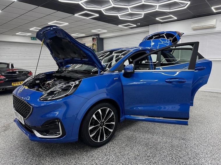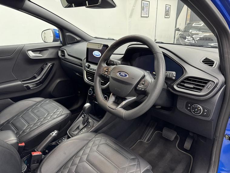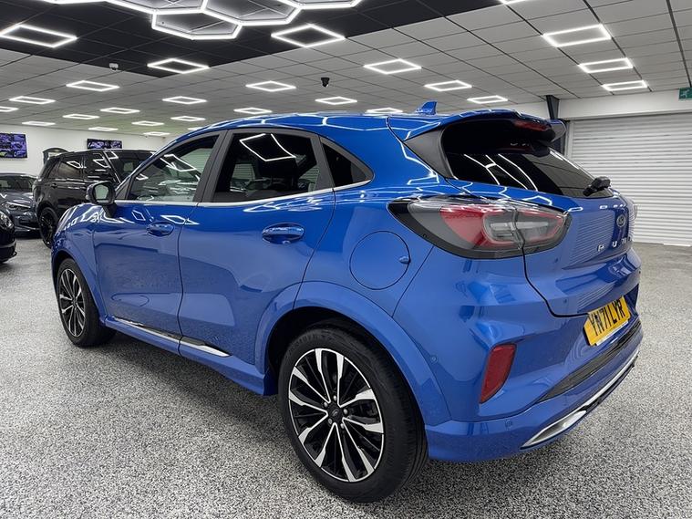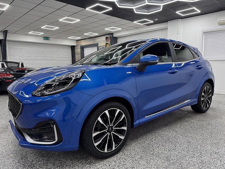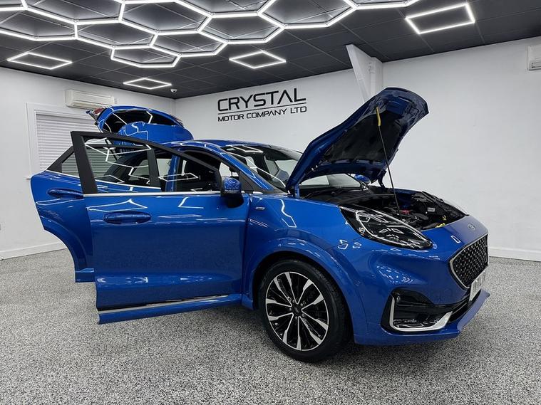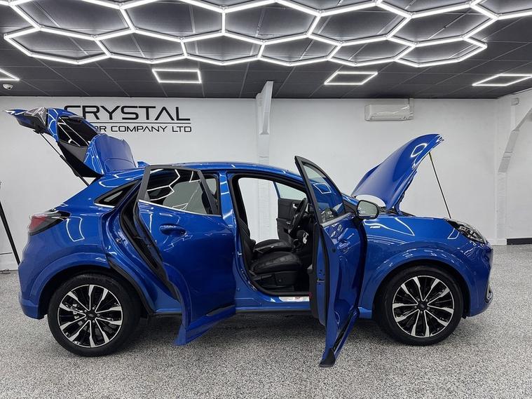 Crystal motor company are delighted to offer for sale this beautifully presented 2021 Ford Puma 1.0T EcoBoost MHEV ST-Line Vignale SUV 5dr Petrol DCT Euro 6 (s/s) (155 ps) finished in DESERT ISLAND BLUE. This car comes with TWO KEYS, ONE FORMER KEEPER, SERVICE HISTORY. This car is equipped with 18" ALLOY WHEELS, FRONT AND REAR PARKING SENSORS, REAR REVERSING CAMERA, ELECTRIC FOLDING WING MIRRORS, BLIND SPOT ASSIST, HEATED WINDSCREEN, BLACK LEATHER SEATS, HEATED FRONT SEATS, MASSAGE FRONT SEATS, HEATED STEERING WHEEL, ADAPTIVE CRUISE CONTROL, PADDLE SHIFT, VIRTUAL COCKPIT, BANG AND OLUFSEN SOUND SYSTEM, PARK ASSIST, DAB RADIO, BLUETOOTH AUDIO, BLUETOOTH PHONE CONNECTION, SATNAV, APPLE CARPLAY, ANDROID AUTO. The car is 100% HPi clear. Part exchange and finance are available and all major credit and debit cards accepted. Crystal Motor Company Ltd Used Programme includes a full PDI inside and out, MOT, mileage certificate and a full inside and out valet. You can request a personalised video with attention given to any specifics you would like a better view of and we will be pleased to assist you. Likewise, we offer our customers a free collection service. Our journey began in 1996 with the aim to deliver the best possible customer experience, you will enjoy a completely hassle free approach, no pressure and great prices, values we stand by to this day. Looking to finance your next car? We have over 30 lenders on board to help each customer with their financial circumstance. Every vehicle benefits from a minimum of 3 months warranty with the option to extend to 6/12/24/36 months.