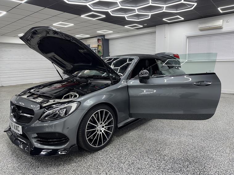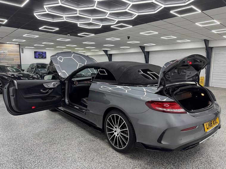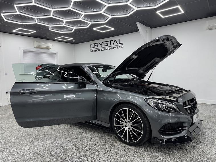 Crystal motor company are delighted to offer for sale this beautifully presented 2018 Mercedes-Benz C Class 3.0 C43 V6 AMG (Premium Plus) Cabriolet 2dr Petrol G-Tronic+ 4MATIC Euro 6 (s/s) (367 ps) finished in GREY. This car comes with TWO KEYS, SERVICE HISTORY. This car is equipped with 19" ALLOY WHEELS, FRONT AND REAR PARKING SENSORS, REAR REVERSING CAMERA, ELECTRIC FOLDING WING MIRRORS, LED HIGH PERFORMANCE HEADLIGHTS, ELECTRIC REAR WIND DEFLECTOR, SWITCHABLE PERFORMANCE EXHAUST, PART LEATHER SEATS, ELECTRIC FRONT SEATS, MEMORY FRONT SEATS, PADDLE SHIFT, CRUISE CONTROL, ELECTRIC ADJUSTABLE STEERING WHEEL, AMG RIDE CONTROL, BURMESTER SOUND SYSTEM, DAB RADIO, BLUETOOTH AUDIO, BLUETOOTH PHONE CONNECTION, SATNAV. The car is 100% HPi clear. Part exchange and finance are available and all major credit and debit cards accepted. Crystal Motor Company Ltd Used Programme includes a full PDI inside and out, MOT, mileage certificate and a full inside and out valet. You can request a personalised video with attention given to any specifics you would like a better view of and we will be pleased to assist you. Likewise, we offer our customers a free collection service. Our journey began in 1996 with the aim to deliver the best possible customer experience, you will enjoy a completely hassle free approach, no pressure and great prices, values we stand by to this day. Looking to finance your next car? We have over 30 lenders on board to help each customer with their financial circumstance. Every vehicle benefits from a minimum of 3 months warranty with the option to extend to 6/12/24/36 months.