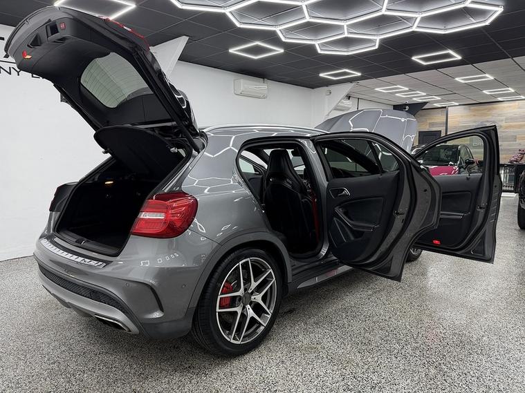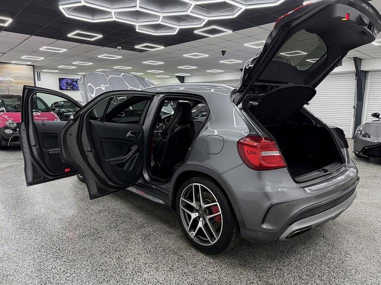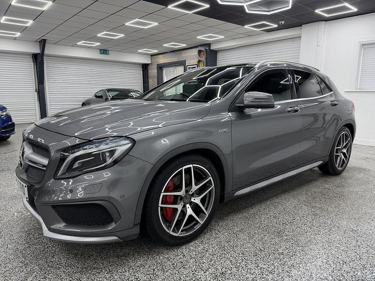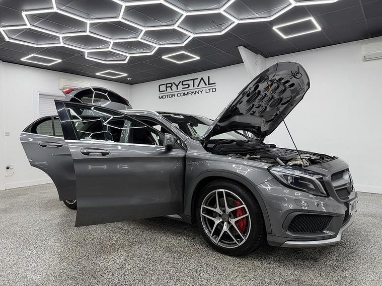 Crystal motor company are delighted to offer for sale this beautifully presented 2016 Mercedes-Benz GLA 2.0 GLA45 AMG (Premium) SUV 5dr Petrol SpdS DCT 4MATIC Euro 6 (s/s) (381 ps) finished in MOUNTAIN GREY. This car comes with TWO KEYS, ONE FORMER KEEPER, FULL MERCEDES SERVICE HISTORY. This car is equipped with 19" ALLOY WHEELS, RED BRAKE CALLIPERS, FRONT AND REAR PARKING SENSORS, REAR REVERSING CAMERA, ELECTRIC REAR TAILGATE, ELECTRIC FOLDING WING MIRRORS, OPENING PANORAMIC ROOF, PART LEATHER SEATS, ELECTRIC FRONT SEATS, MEMORY FRONT SEATS, HEATED FRONT SEATS, PADDLE SHIFT, CRUISE CONTROL, HARMAN KARDON SOUND SYSTEM, AMBIENT LIGHTING (12 COLOUR CHOICE), DRIVE SELECT, DAB RADIO, BLUETOOTH AUDIO, BLUETOOTH PHONE CONNECTION, SATNAV. The car is 100% HPi clear. Part exchange and finance are available and all major credit and debit cards accepted. Crystal Motor Company Ltd Used Programme includes a full PDI inside and out, MOT, mileage certificate and a full inside and out valet. You can request a personalised video with attention given to any specifics you would like a better view of and we will be pleased to assist you. Likewise, we offer our customers a free collection service. Our journey began in 1996 with the aim to deliver the best possible customer experience, you will enjoy a completely hassle free approach, no pressure and great prices, values we stand by to this day. Looking to finance your next car? We have over 30 lenders on board to help each customer with their financial circumstance. Every vehicle benefits from a minimum of 3 months warranty with the option to extend to 6/12/24/36 months. Crystal Motor Company Ltd Is A Well Established Company, Being Established Since 1996, We Are Open 7 Days A Week To Fit Our Customers Needs & Requirements. We have a wide selection of cars, trucks and no vat commercials available, All Debit/Credit Cards Taken, Finance options available, Part exchange available, AA Approved dealer, Check Out Our Google & Facebook Review's For Your Peace Of Mind, Low Deposit Will Secure Any Vehicle, Nationwide Delivery Available! AFTER HOURS PLEASE CALL 01604306318 -