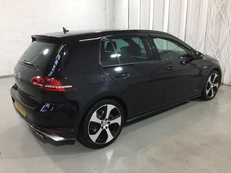 This Volkswagen Golf GTI has the desirable combination of 217 horsepower 2.0 petrol turbo engine and fully automatic transmission for combined economy in excess of 40 MPG. Presented in excellent condition inside and out, it benefits from adaptive suspension, adaptive cruise control (ACC), lane assist, automatic climate control air conditioning, multi-function leather steering wheel with F1 style paddleshifters, touch screen multimedia system with Bluetooth telephone and audio streaming, FM radio and CD player, upgradeable Satellite Navigation (for an additional cost), electric windows all around, front and rear Park Distance Control, colour reversing camera, remote central door locking and immobiliser with two full function keys and keyless pushbutton starting. The rear seats have ISOFIX childseat points and split fold as required. A truly cherished example, with full service history and BIMTA mileage guarantee. The car also benefits from a REMUS exhaust and Defi Stepmaster boost gauge for an enhanced driving experience. Registration: RX15 KVL.First used April 2015, distance driven 41, 105 miles.