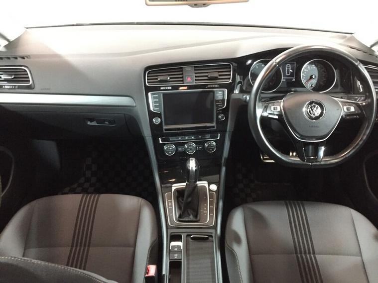 This Volkswagen Golf VII Estate has a 105 horsepower petrol engine and 7 speed automatic DSG transmission for combined economy in excess of 56 MPG. It is the special "Allstar" edition with a designer cloth interior and special diamond-cut finish alloy wheels. The specification also includes dual-zone climate control air conditioning, large touch screen radio CD player with Bluetooth handsfee telephone and audio streaming, music jukebox, AM and FM radio and upgradeable to Satellite Navigation (at additional cost). It also benefits from a multi-function leather steering wheel with F1 style paddleshift gear change, Adaptive Cruise Control (ACC) and speed limiter, remote central door locking and immobiliser with two full function keys. The rear seats have ISOFIX childseat points and split fold as required. The large boot has a retractable luggage cover and emergency spare wheel also present. Presented in first class condition inside and out, with full service history. Currently awaiting registration. Registration: KH16 DXA.First used July 2016, distance driven 51, 250 miles.