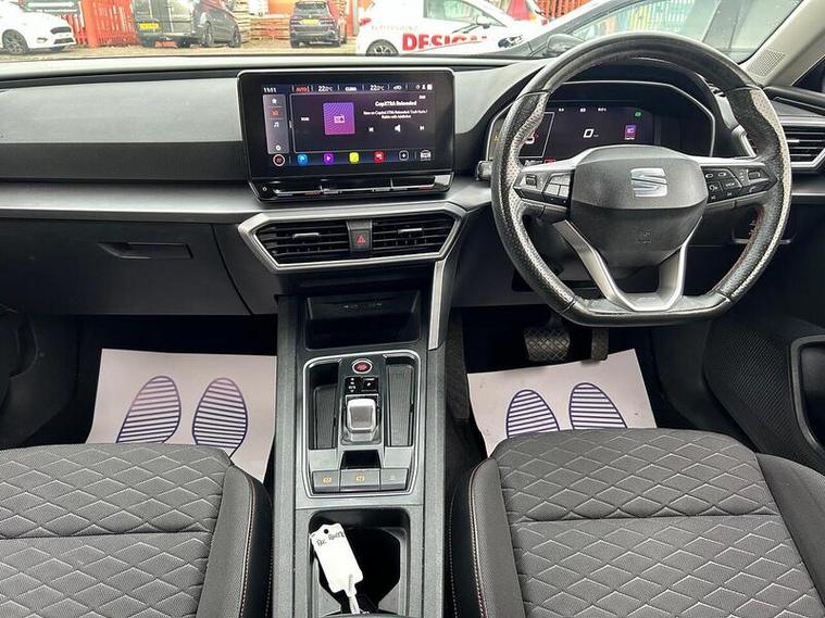 This 2020 SEAT Leon eTSI FR boasts an MOT valid until September 2026, offering excellent peace of mind. This stylish hatchback features a 1.5 litre petrol hybrid engine, meeting Euro 6 emissions standards. The FR trim level ensures a sporty feel, complemented by a generous boot space perfect for your needs.Experience advanced technology with the Leon's Three Zone Climate Control, ensuring comfort for all occupants. Stay connected effortlessly with Full Link Smartphone Integration, offering wireless Apple CarPlay and wired Google Android Auto, alongside Bluetooth connectivity through the Media System Plus with Navigation. Parking is made simple with Park Assist, including front and rear parking sensors. This SEAT Leon accelerates from 0 to 62mph in just 8.5 seconds, demonstrating its responsive performance compared to similar vehicles.