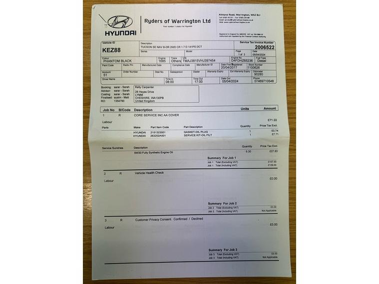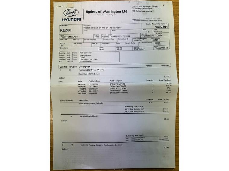 ? Hyundai TUCSON 1.7 CRDi Blue Drive SE Nav DCT Euro 6 – GREAT VALUE – PART EXCHANGE SPECIAL! ?This well-cared-for Hyundai Tucson 1.7 CRDi SE Nav has covered 106, 000 miles and has come to us as a part exchange from a long-standing, trusted customer. Instead of sending it to auction, we're offering it directly to the public — giving you the chance to purchase a spacious, reliable, high-spec SUV at fantastic value.Before leaving us, the car will undergo a full and thorough vehicle health check for your peace of mind.⭐ SE Nav Specification Includes:Touchscreen Satellite Navigation SystemReversing CameraBluetooth, DAB Radio & USB ConnectivityCruise Control & Speed LimiterDual-Zone Climate ControlAutomatic HeadlightsRear Parking SensorsAlloy WheelsElectric Folding MirrorsHill Start Assist & Drive Mode SettingsSpacious Cabin & Large BootA fantastic spec level, making the Tucson a comfortable and practical family SUV.? Buy With ConfidencePurchase from a family-owned business with over 20 years of experience supplying quality used vehicles. Customer satisfaction is at the heart of what we do — please take a moment to read our 5-Star Google Reviews to see why customers keep returning.? Finance Options AvailableWe offer low-rate finance packages to suit all budgets. Contact us for a fast, no-obligation finance quote.? Viewings by Appointment OnlyAll vehicles are stored across our 4 sites, so viewings are strictly by appointment to ensure the car is fully prepared for your visit.This Hyundai Tucson offers excellent value for money — practical, high-spec, economical and direct from a trusted customer.Don’t miss it — message or call us today to arrange your appointment!