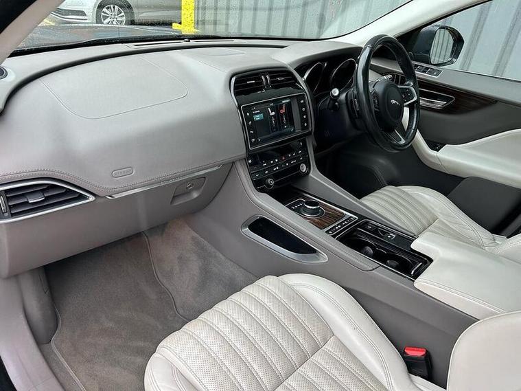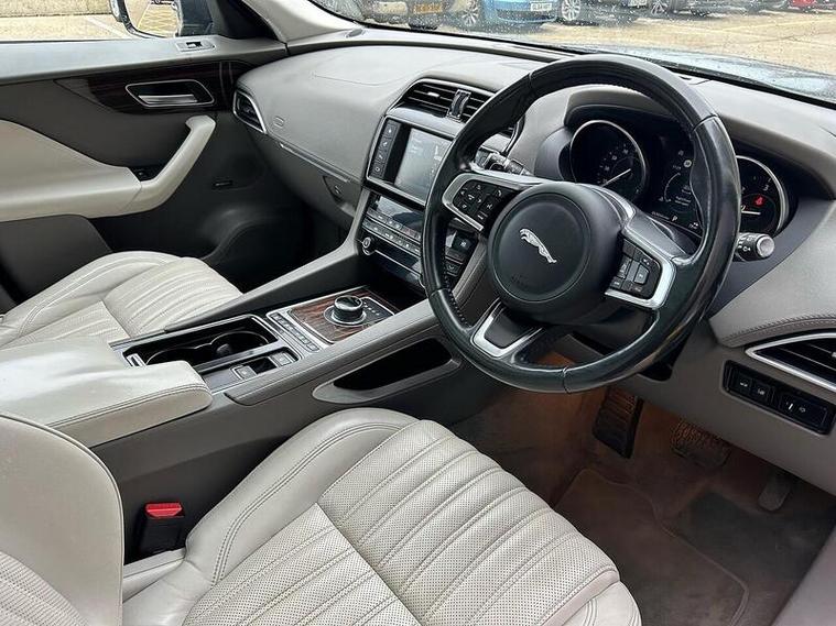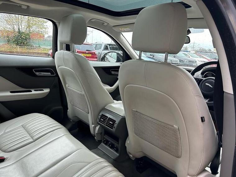 This stunning Jaguar 2.0 D180 Portfolio SUV in sleek grey is a true head-turner. With only 2 previous owners, this diesel automatic AWD model is in pristine condition and ready for its next adventure. The powerful 2.0 engine delivers 178 BHP and a top speed of 129 mph, while still achieving an impressive 53.3 MPG. The luxurious interior features 10-way electric front seats, dual-zone climate control, and a panoramic roof. Safety features include AEB, lane departure warning, and a rear view camera. this 2017 model is practically brand new. Don't miss out on the opportunity to own this top-of-the-line Jaguar SUV.