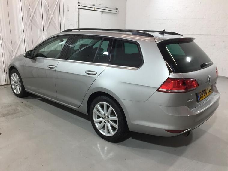 This Volkswagen Golf Estate has a 105 horsepower 1.2 petrol engine and 7 speed automatic DSG transmission for combined economy of 56 MPG. It benefits from ice cold Air Conditioning, large touch screen multimedia player with FM radio, CD player, Bluetooth handsfee telephone and audio playback, upgradeable Satellite Navigation, leather steering wheel, automatic Bi-Xenon headlamps, remote central door locking and immobiliser, electric power-fold door mirrors and 17 inch alloy wheels. The rear seats have ISOFIX childseat points and split fold. The boot has a retractable luggage cover and emergency spare wheel and tyre also present. We supply a BIMTA mileage guarantee with all our cars. There is a full service history. Registration: RF64 XAS.First used 01/09/2014, distance driven 53, 352 miles.