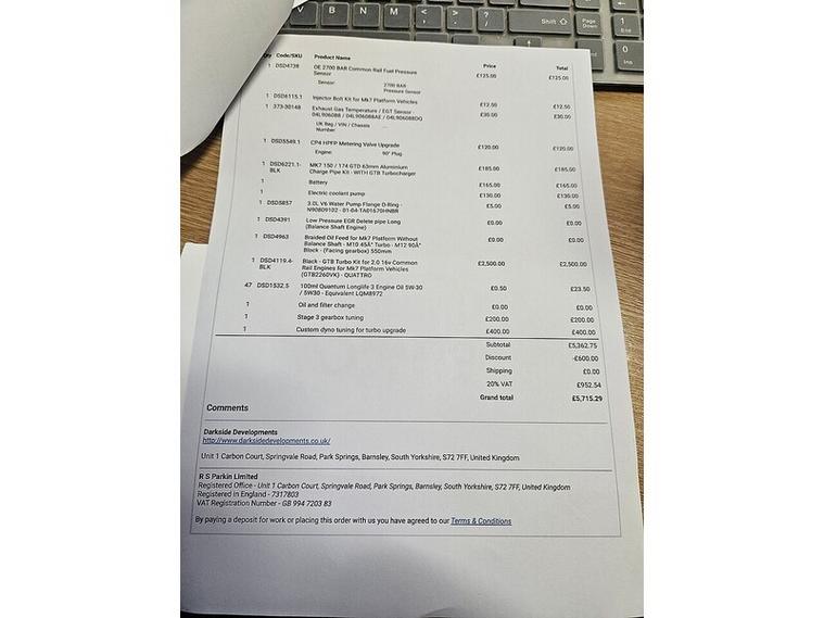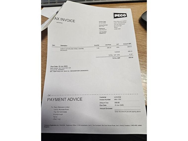 UPGRADES/MODIFACATIONSSTAGE 3 MAP BY DARKSIDE DEVELOPMENTS GHOST SERIES 2 ALARM AND TRACKERMAXTON DESIGN BODY KIT PECO EXHAUST SYSTEM 19 INCH 3SDM WHEELS POWDER COATED IN SHADOW CHROMETIMINGBELT AND WATERPUMP REPLACED 09/12/2024 61609 MILES For sale is this stunning Audi TT TDI Black Edition in a sleek white colour. This 2017 model has had 3 owners and comes with a diesel engine size of 2.0, making it both powerful and efficient with a top speed of 145 and an acceleration of 6.5. With 76977 miles on the clock, this coupe comes with a range of standard features including 19in Alloy Wheels, Audi Drive Select, Bang and Olufsen Sound System, and more.In addition, this Audi TT comes with optional specifications such as Advanced Key, Audi Active Lane Assist, Audi Matrix LED Headlights, Heated Front Seats, and more. With a BHP of 181 and an impressive MPG of 52.3, this car offers both style and performance. Don't miss out on the opportunity to own this luxury vehicle. Contact us today to arrange a test drive.