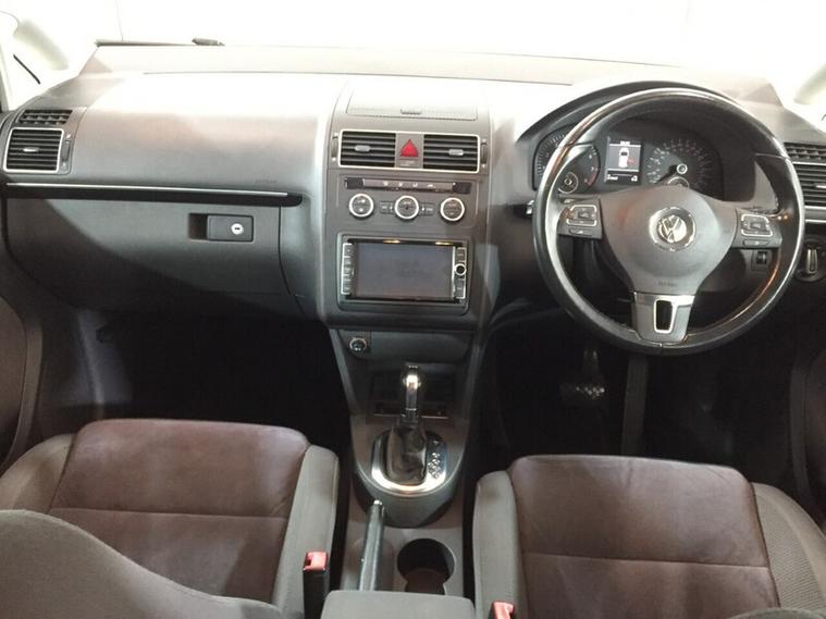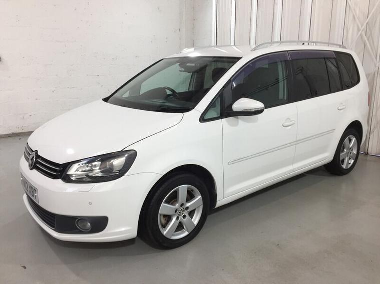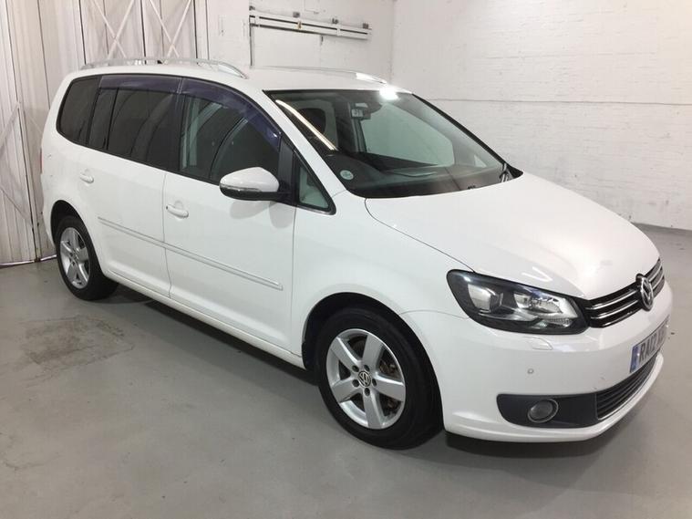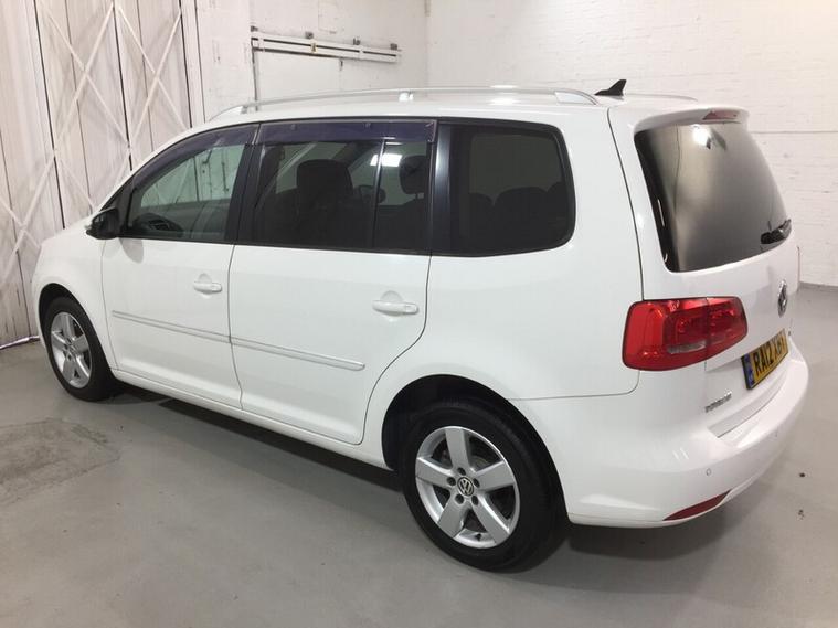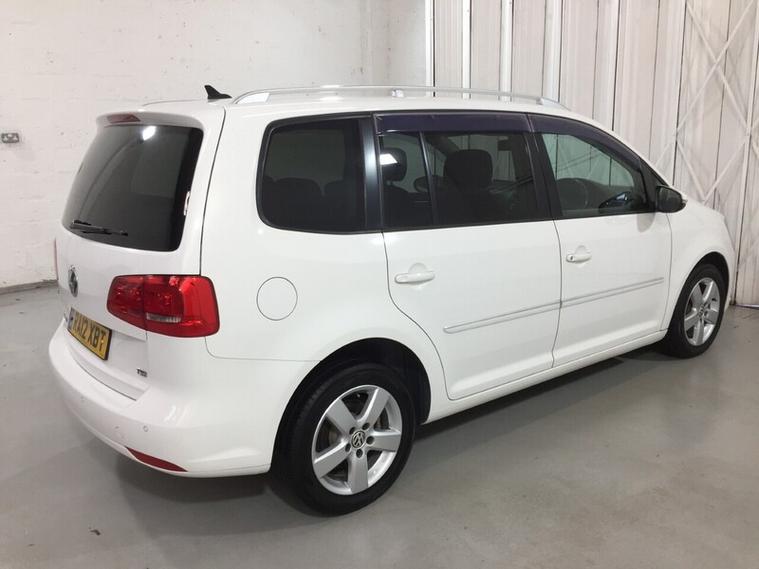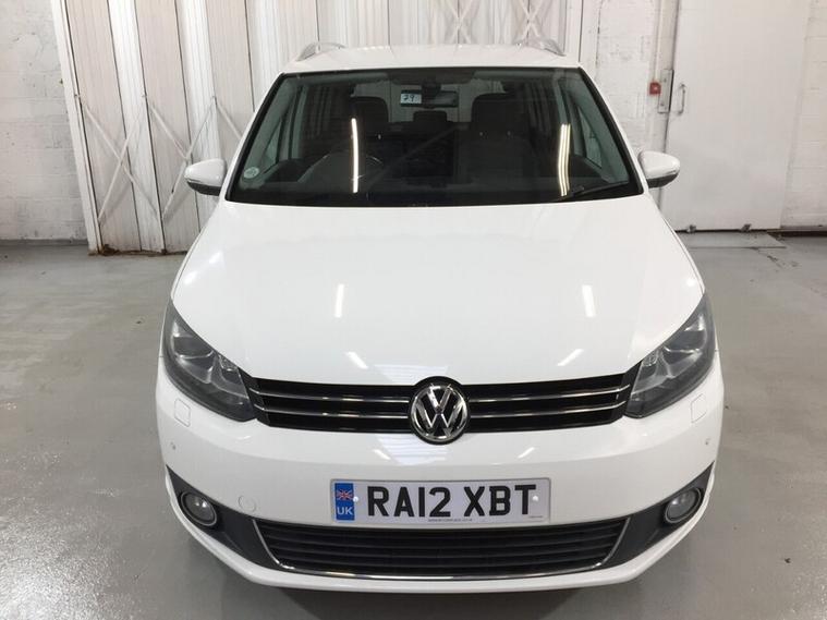 This Volkswagen Touran has 7 seats and is fitted with a 140 horsepower petrol engine and fully automatic transmission for combined economy of 42 MPG rising to 50 MPG for motorway use. It benefits from dual zone climate control air conditioning, cruise control, multi-function leather steering wheel with F1 style paddleshift gear change, automatic Bi-Xenon headlamps, parking sensors, factory touch screen multimedia interface with CD and DVD player, Bluetooth Handsfree telephone and audio streaming and 76-90 MHz FM Radio and colour reversing camera. The car also benefits from rear ISOFIX childseat points, tinted rear windows, black cloth and alcantara interior trim, electric windows all around, remote central door locking and immobiliser with two full function keys, heated electric power-fold door mirrors and alloy wheels. The car is presented in excellent condition, with service history and BIMTA mileage verification guarantee. Ready to drive away today. Registration: RA12 XBT. First used July 2012, distance driven 41, 950 miles.