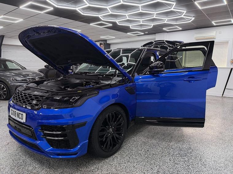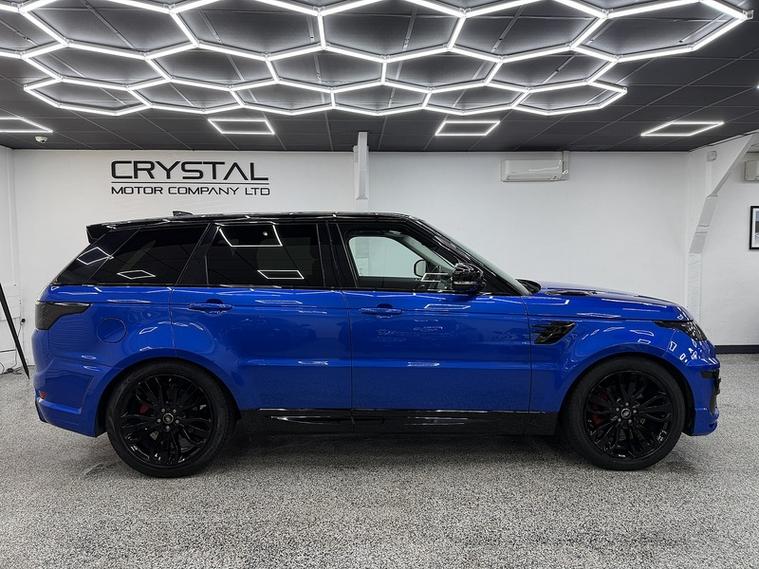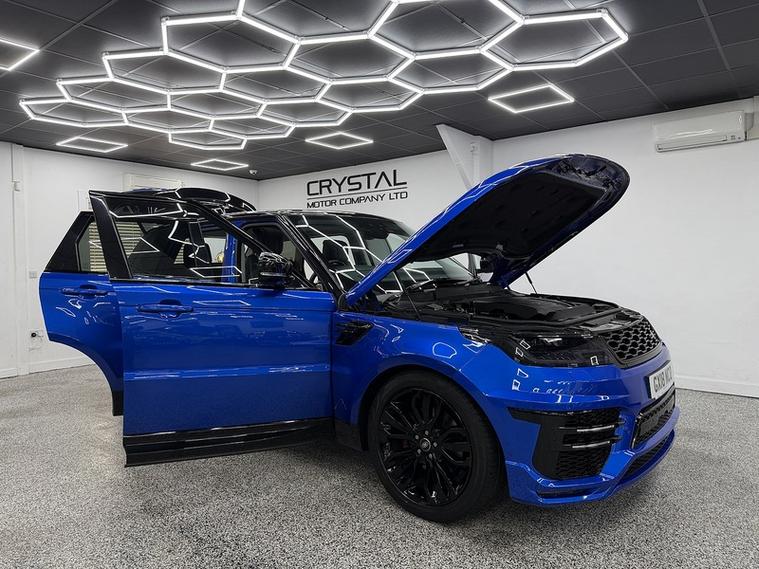 Crystal motor company are delighted to offer for sale this beautifully presented 2018 Land Rover Range Rover Sport 2.0 Si4 HSE SUV 5dr Petrol Auto 4WD Euro 6 (s/s) (300 ps) finished in SVO PREMIUM PALETTE BLUE. This car comes with TWO KEYS, ONE FORMER KEEPER, SERVICE HISTORY. This car is equipped with 21" ALLOY WHEELS, RED BRAKE CALLIPERS, FRONT AND REAR PARKING SENSORS, REAR REVERSING CAMERA, ELECTRIC FOLDING WING MIRRORS, CONTRAST GLOSS BLACK ROOF, OPENING PANORAMIC ROOF, BLACK LEATHER SEATS, ELECTRIC FRONT SEATS, MEMORY FRONT SEATS, HEATED FRONT SEATS, HEATED REAR SEATS, PADDLE SHIFT, CRUISE CONTROL, VIRTUAL COCKPIT, CENTRE CONSOLE FRIDGE, DAB RADIO, BLUETOOTH AUDIO, BLUETOOTH PHONE CONNECTION, SATNAV, APPLE CARPLAY, ANDROID AUTO. The car is 100% HPi clear. Part exchange and finance are available and all major credit and debit cards accepted. Crystal Motor Company Ltd Used Programme includes a full PDI inside and out, MOT, mileage certificate and a full inside and out valet. You can request a personalised video with attention given to any specifics you would like a better view of and we will be pleased to assist you. Likewise, we offer our customers a free collection service. Our journey began in 1996 with the aim to deliver the best possible customer experience, you will enjoy a completely hassle free approach, no pressure and great prices, values we stand by to this day. Looking to finance your next car? We have over 30 lenders on board to help each customer with their financial circumstance. Every vehicle benefits from a minimum of 3 months warranty with the option to extend to 6/12/24/36 months.