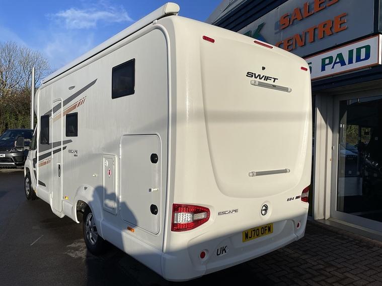 For sale is this stunning Fiat Ducato Swift Escape motorhome in pristine condition. With only 2 previous owners, this van conversion is the perfect choice for your next adventure. Powered by a 2.3 diesel engine, this manual transmission motorhome boasts a top speed of 10 and 129 BHP. The white exterior is complemented by a sleek design, making it a standout on the road.With just 8615 miles on the clock and a fuel efficiency of 282.5 MPG, this 2020 model is ready to hit the open road. The standard specification includes all the essentials for a comfortable journey, while optional specifications can be added to customize your experience.Don't miss out on this incredible opportunity to own a Fiat Ducato Swift Escape motorhome. Contact us today to arrange a viewing and start your next adventure in style.