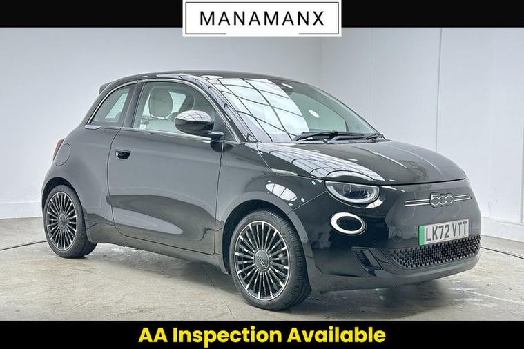 *** LAST SERVICED @1, 393 MLS! & LOW MILEAGE! *** Manamanx are extremely proud to present this Fiat 500e La Prima presented in Onyx Black with a Eco-Leather interior. Available NOW! and presented to you with only 1 owner from new! Complemented with documented service history. Don't Delay, Call Us Today to secure your appointment with one of our dedicated and experienced Sales Advisors! This car has been well cared for and is in excellent condition, with just 1, 714 miles on the clock.****** VISIT US TODAY! ****** Discover this 2022 Fiat 500e La Prima. This stunning vehicle is equipped with a wealth of specification below! ↓↓↓↓↓↓↓↓↓↓↓- INFOTAINMENT TOUCHSCREEN DISPLAY ✅- SATELLITE NAVIGATION ( SAT-NAV ) ✅- DAB RADIO ✅- PREMIUM AUDIO SYSTEM ( JBL & HARMAN ) ✅- APPLE CARPLAY ✅- ANDROID AUTO ✅- WIRELESS DEVICE CHARGER ✅- ATTENTION ASSIST ✅- CRUISE CONTROL ✅- EV MODE SELECTOR ✅- PARKING SENSORS ✅- ELECTRIC/HEATED SIDE MIRRORS ✅- PANORAMIC SUNROOF ( PAN-ROOF ) ✅- LED HEADLIGHTS ✅- AUTO AIR CONDITIONING ✅- KEYLESS GO ✅Don't miss out on the chance to own this fantastic car! View the full specification list below and in the extra features section.At Manamanx, we consider all vehicles for part exchange, regardless of age, mileage, or condition. Our team will provide a fair and competitive valuation to make upgrading to your next car as simple and hassle-free as possible.** Please note that cars offered by Manamanx are used cars. These vehicles may therefore have imperfections, commensurate with age and mileage. This is reflected in the advertised price. **
