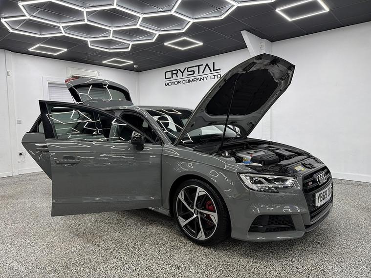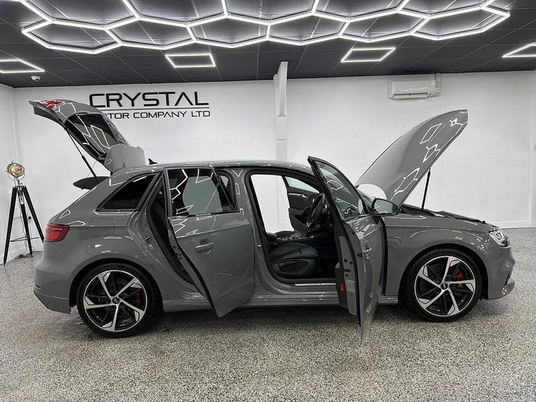 Crystal motor company are delighted to offer for sale this beautifully presented 2020 Audi S3 2.0 TFSI Black Edition Sportback 5dr Petrol S Tronic quattro Euro 6 (s/s) (300 ps) finished in QUANTUM GREY. This car comes with TWO KEYS, ONE FORMER KEEPER, SERVICE HISTORY. This car is equipped with 18" ALLOY WHEELS, RED BRAKE CALLIPERS, REAR PARKING SENSORS, REAR PRIVACY GLASS, LED HEADLIGHTS, BLACK LEATHER SEATS, HEATED FRONT SEATS, FLAT BOTTOM S STEERING WHEEL, PADDLE SHIFT, CRUISE CONTROL, VIRTUAL COCKPIT, COCKPIT NAVIGATION, BANG AND OLUFSEN SOUND SYSTEM, AUTO HOLD ASSIST, AUDI DRIVE SELECT, DAB RADIO, BLUETOOTH AUDIO, BLUETOOTH PHONE CONNECTION, SATNAV, APPLE CARPLAY, ANDROID AUTO. The car is 100% HPi clear. Part exchange and finance are available and all major credit and debit cards accepted. Crystal Motor Company Ltd Used Programme includes a full PDI inside and out, MOT, mileage certificate and a full inside and out valet. You can request a personalised video with attention given to any specifics you would like a better view of and we will be pleased to assist you. Likewise, we offer our customers a free collection service. Our journey began in 1996 with the aim to deliver the best possible customer experience, you will enjoy a completely hassle free approach, no pressure and great prices, values we stand by to this day. Looking to finance your next car? We have over 30 lenders on board to help each customer with their financial circumstance. Every vehicle benefits from a minimum of 3 months warranty with the option to extend to 6/12/24/36 months.