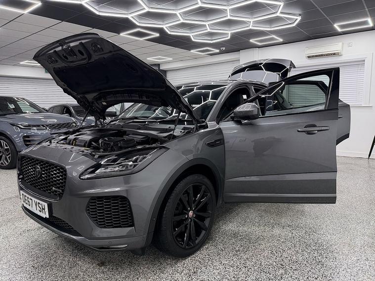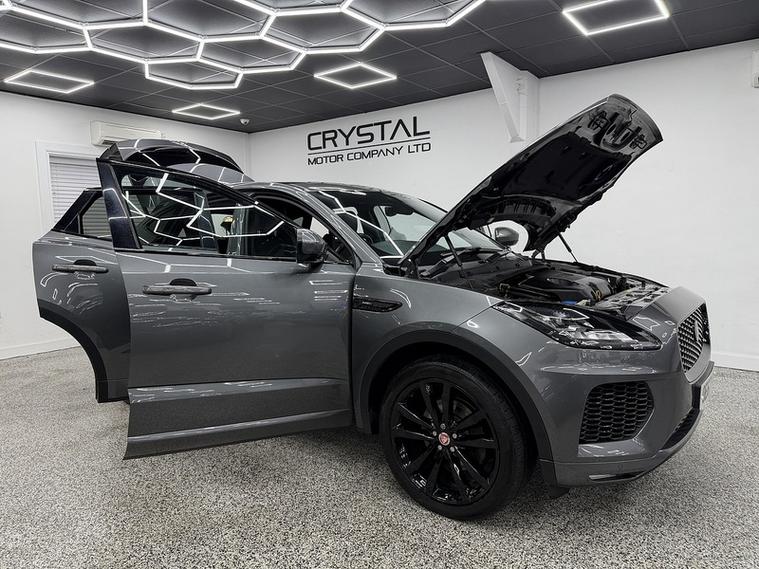 Crystal motor company are delighted to offer for sale this beautifully presented 2018 Jaguar E-PACE 2.0 D180 R-Dynamic HSE SUV 5dr Diesel Auto AWD Euro 6 (s/s) (180 ps) finished in CORRIS GREY. This car comes with TWO KEYS, THREE FORMER KEEPERS, SERVICE HISTORY. This car is equipped with 20" ALLOY WHEELS, FRONT AND REAR PARKING SENSORS, REAR REVERSING CAMERA, ELECTRIC REAR TAILGATE, ELECTRIC FOLDING WING MIRRORS, BLIND SPOT ASSIST, FIXED PANORAMIC ROOF, HEATED WINDSCREEN, BLACK LEATHER SEATS, ELECTRIC FRONT SEATS, MEMORY FRONT SEATS, HEATED FRONT SEATS, PADDLE SHIFT, ADAPTIVE CRUISE CONTROL, VIRTUAL COCKPIT, MERIDIAN SOUND SYSTEM, DAB RADIO, BLUETOOTH AUDIO, BLUETOOTH PHONE CONNECTION, SATNAV, APPLE CARPLAY, ANDROID AUTO. The car is 100% HPi clear. Part exchange and finance are available and all major credit and debit cards accepted. Crystal Motor Company Ltd Used Programme includes a full PDI inside and out, MOT, mileage certificate and a full inside and out valet. You can request a personalised video with attention given to any specifics you would like a better view of and we will be pleased to assist you. Likewise, we offer our customers a free collection service. Our journey began in 1996 with the aim to deliver the best possible customer experience, you will enjoy a completely hassle free approach, no pressure and great prices, values we stand by to this day. Looking to finance your next car? We have over 30 lenders on board to help each customer with their financial circumstance. Every vehicle benefits from a minimum of 3 months warranty with the option to extend to 6/12/24/36 months.