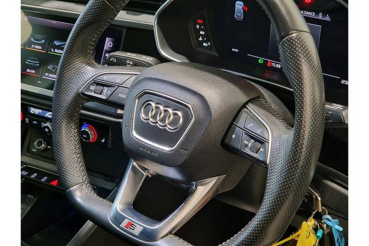 - 3-Spoke Leather Multi-Function Steering Wheel - S Badging and Grips in Perforated Leather with Contrast Stitching