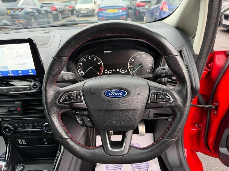Here we have a Ford EcoSport ST-Line 1.0 Petrol finished in Metallic Red having only done 95k miles from new with a recent service, also comes with a long MOT until December 2026 with no advisories.The interior and exterior of the car have been looked after very well, it starts and drives perfectly with no issues at all. Being the ST-Line top of the range spec, this vehicle benefits from Navigation, Apple Car Play, ST-Line Body Kit, Rear Camera, Cruise Control, Reverse Parking Sensors, Bluetooth phone connectivity, Heated seats, Leather Seats, Upgraded Alloy Wheels, USB-C and aux capability too. Fully HPI clear. The car will be sold with extendable Warranty. We also offer Part Exchange / Delivery / Finance, HPI report available on request. Please call us on 01215403191 for further enquiries. =============================================================================== Why not read our Auto Trader reviews to see what our customers think about their experience here and why they choose to buy from us? =============================================================================== Please contact our sales department for the latest finance offers on this vehicle. We have a dedicated team researching our used car prices daily to make sure we offer the best value cars in the market, =============================================================================== To arrange a personal viewing of this amazing car, or if you would like a tailored video to be emailed to you then please contact us. ===============================================================================Please give us a call for directions. Our postcode for Sat Nav direction is B25 8EL. • Finance subject to status, T&C's apply. , -